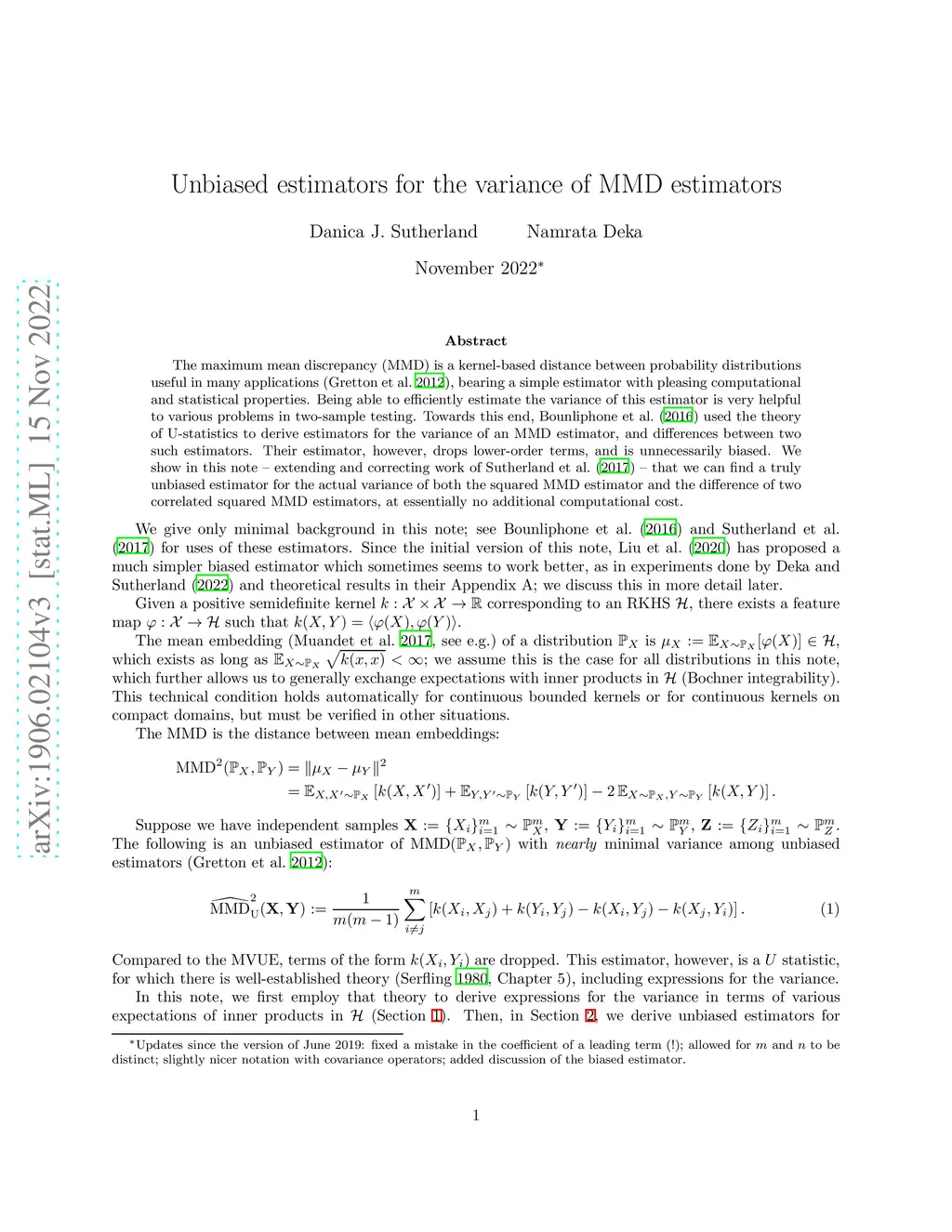 The maximum mean discrepancy (MMD) is a kernel-based distance between probability distributions useful in many applications (Gretton et al. 2012), bearing a simple estimator with pleasing computational and statistical properties. Being able to efficiently estimate the variance of this estimator is very helpful to various problems in two-sample testing. Towards this end, Bounliphone et al. (2016) used the theory of U-statistics to derive estimators for the variance of an MMD estimator, and differences between two such estimators. Their estimator, however, drops lower-order terms, and is unnecessarily biased. We show in this note - extending and correcting work of Sutherland et al. (2017) - that we can find a truly unbiased estimator for the actual variance of both the squared MMD estimator and the difference of two correlated squared MMD estimators, at essentially no additional computational cost.