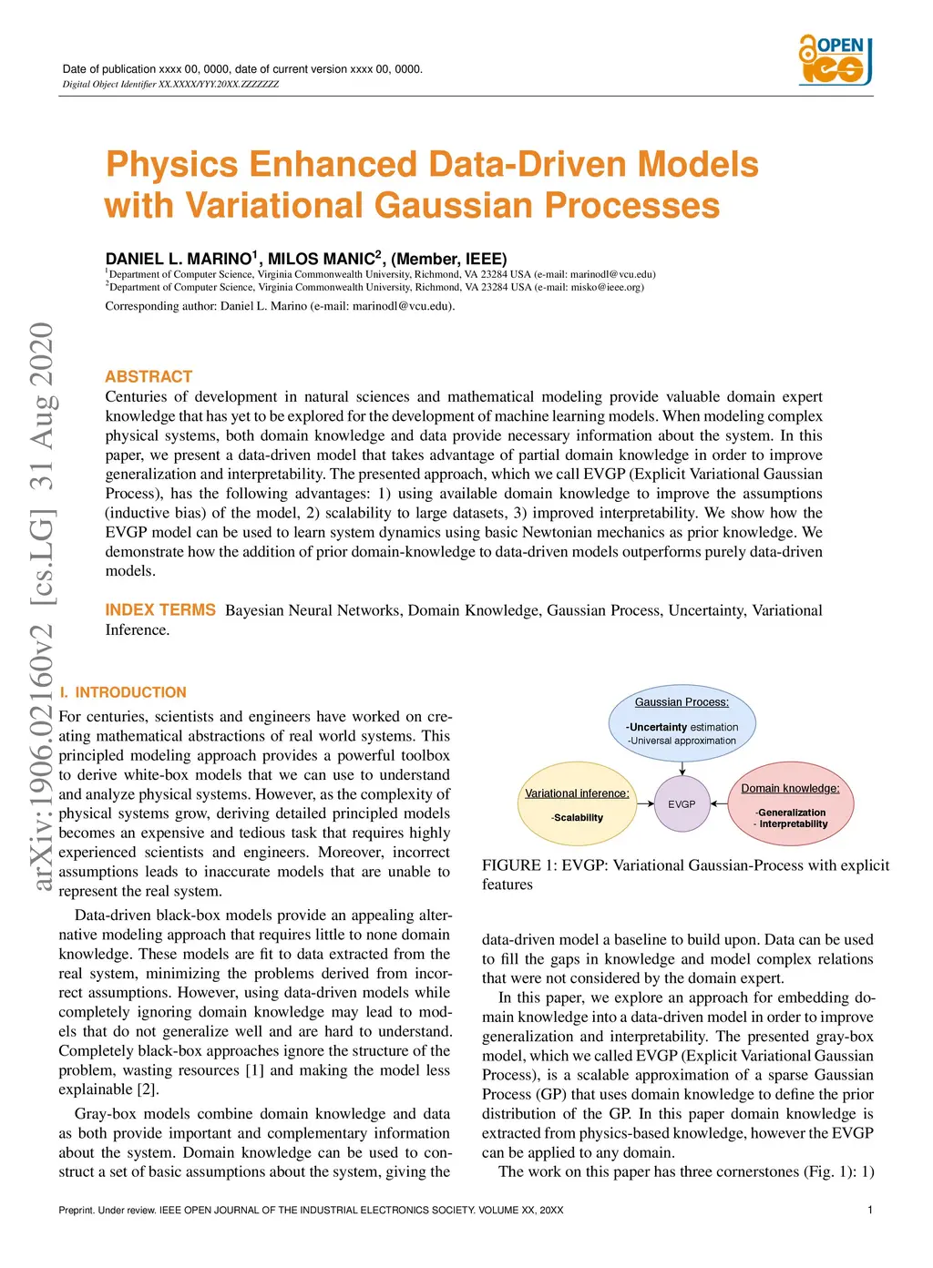 Centuries of development in natural sciences and mathematical modeling provide valuable domain expert knowledge that has yet to be explored for the development of machine learning models. When modeling complex physical systems, both domain knowledge and data provide necessary information about the system. In this paper, we present a data-driven model that takes advantage of partial domain knowledge in order to improve generalization and interpretability. The presented approach, which we call EVGP (Explicit Variational GaussianProcess), has the following advantages: 1) using available domain knowledge to improve the assumptions(inductive bias) of the model, 2) scalability to large datasets, 3) improved interpretability. We show how the EVGP model can be used to learn system dynamics using basic Newtonian mechanics as prior knowledge. We demonstrate how the addition of prior domain-knowledge to data-driven models outperforms purely data-driven models.