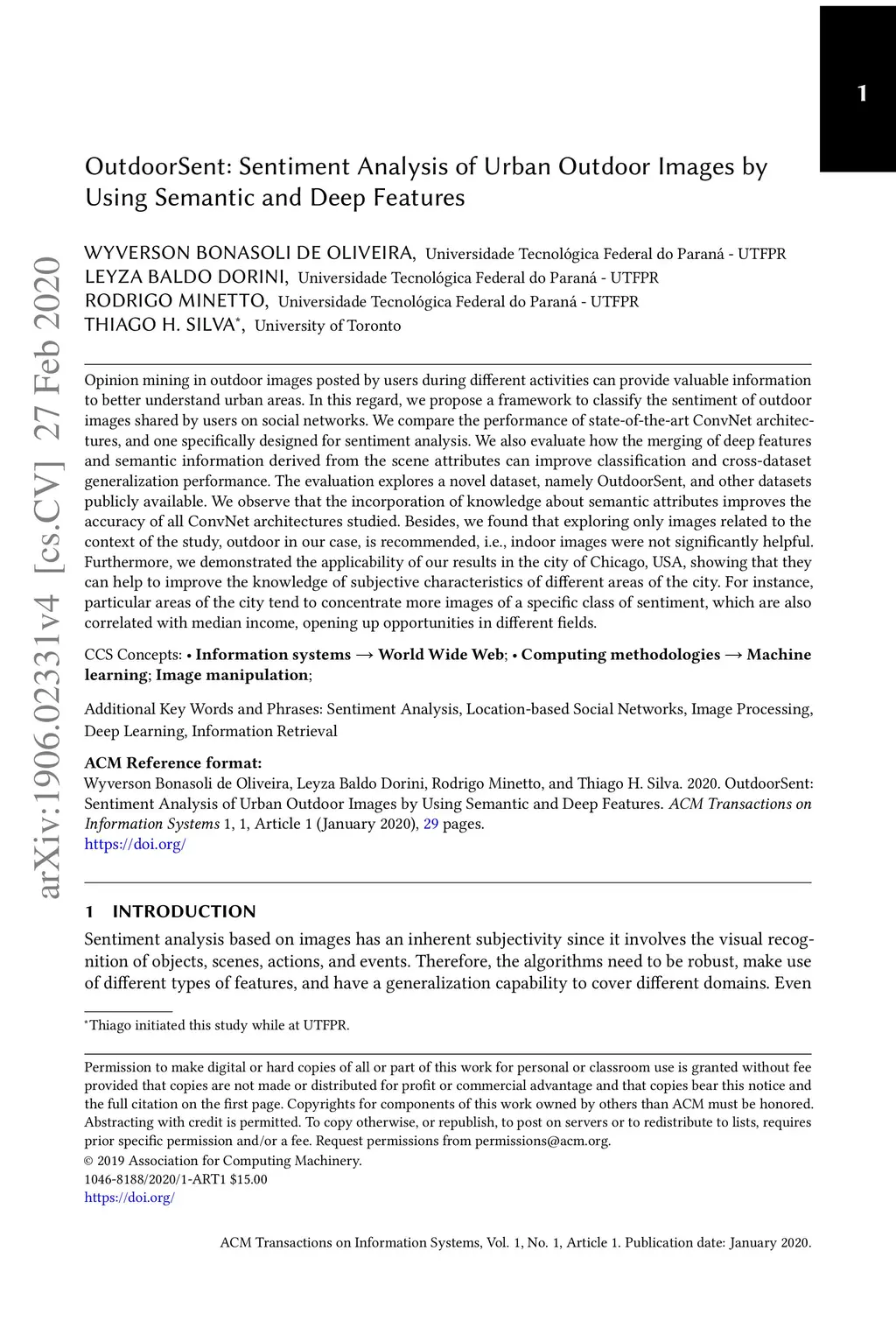 OutdoorSent: Sentiment Analysis of Urban Outdoor Images by Using