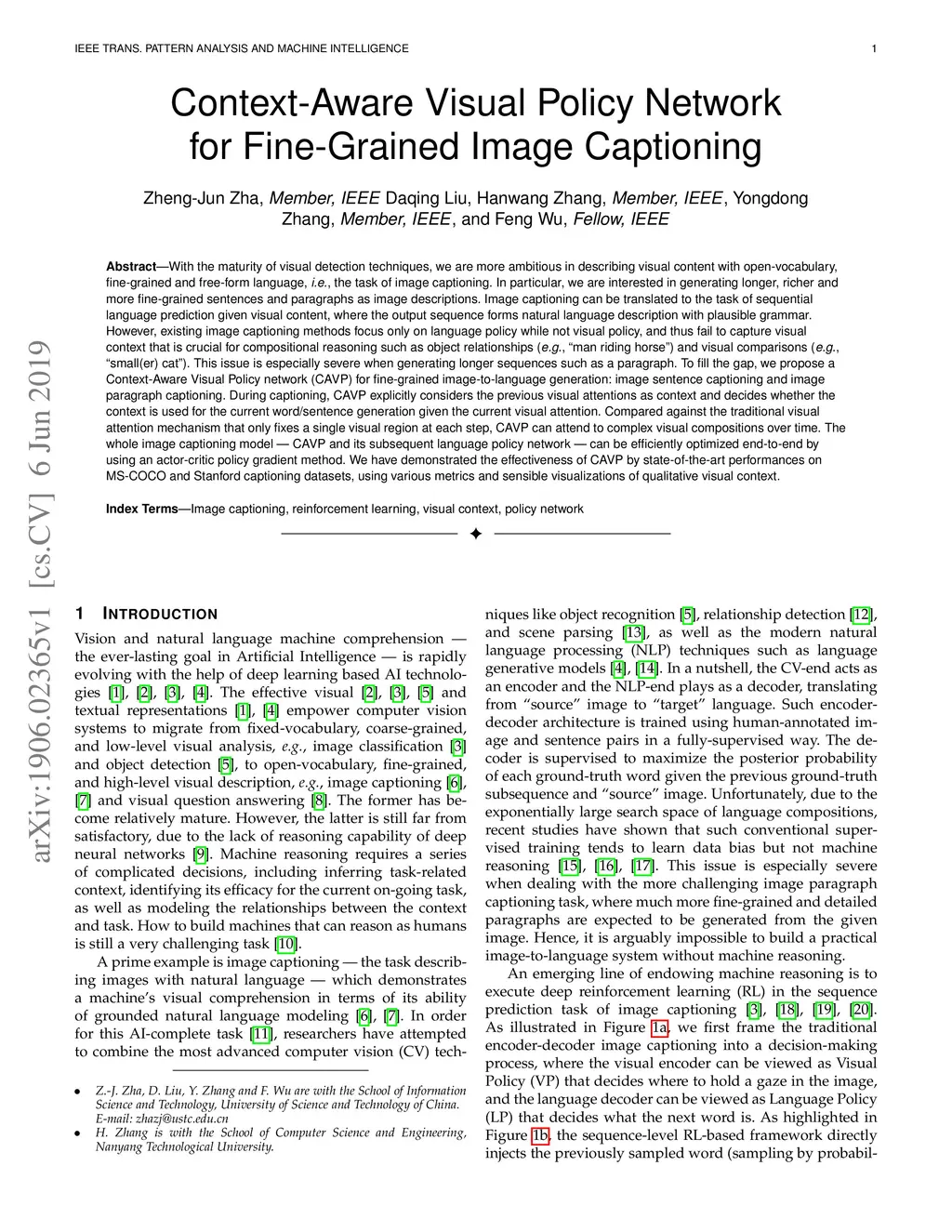 Context-Aware Visual Policy Network for Fine-Grained Image Captioning
