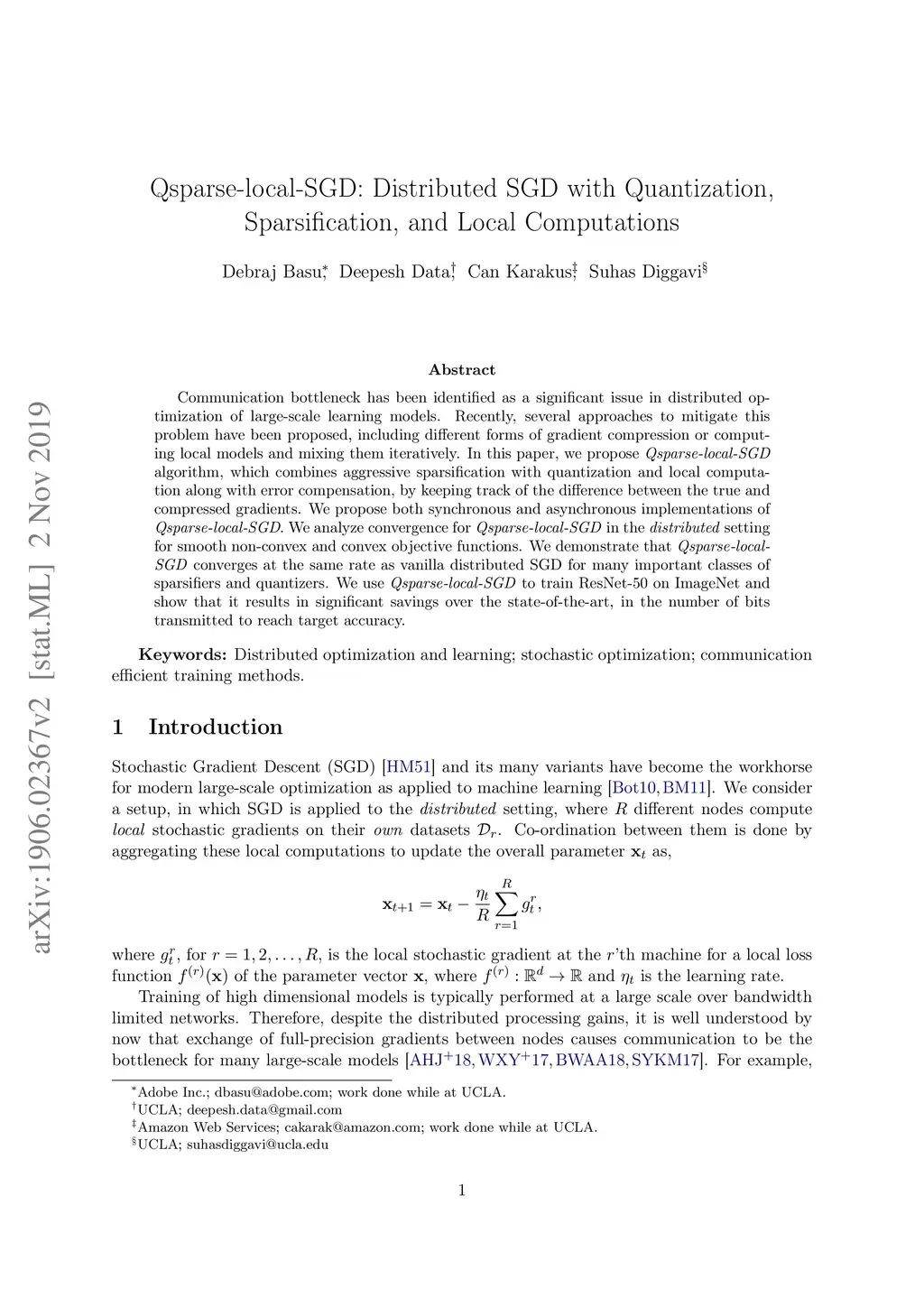Qsparse-local-SGD: Distributed SGD with Quantization, Sparsification,