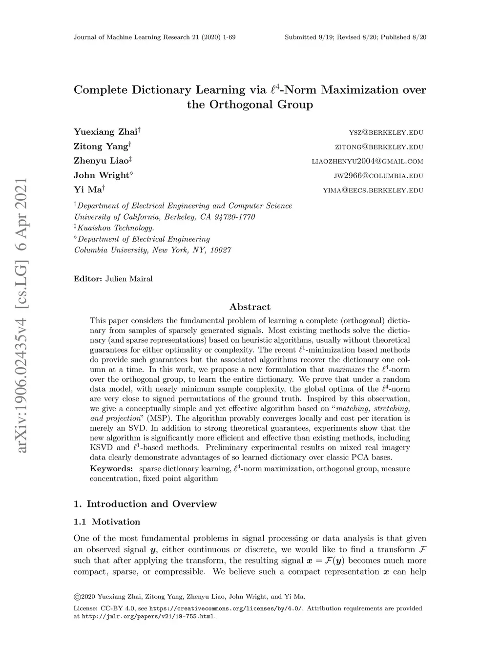 This paper considers the fundamental problem of learning a complete (orthogonal) dictionary from samples of sparsely generated signals. Most existing methods solve the dictionary (and sparse representations) based on heuristic algorithms, usually without theoretical guarantees for either optimality or complexity. The recent -minimization based methods do provide such guarantees but the associated algorithms recover the dictionary one column at a time. In this work, we propose a new formulation that maximizes the -norm over the orthogonal group, to learn the entire dictionary. We prove that under a random data model, with nearly minimum sample complexity, the global optima of the norm are very close to signed permutations of the ground truth. Inspired by this observation, we give a conceptually simple and yet effective algorithm based on "matching, stretching, and projection" (MSP). The algorithm provably converges locally at a superlinear (cubic) rate and cost per iteration is merely an SVD. In addition to strong theoretical guarantees, experiments show that the new algorithm is significantly more efficient and effective than existing methods, including KSVD and -based methods. Preliminary experimental results on mixed real imagery data clearly demonstrate advantages of so learned dictionary over classic PCA bases.