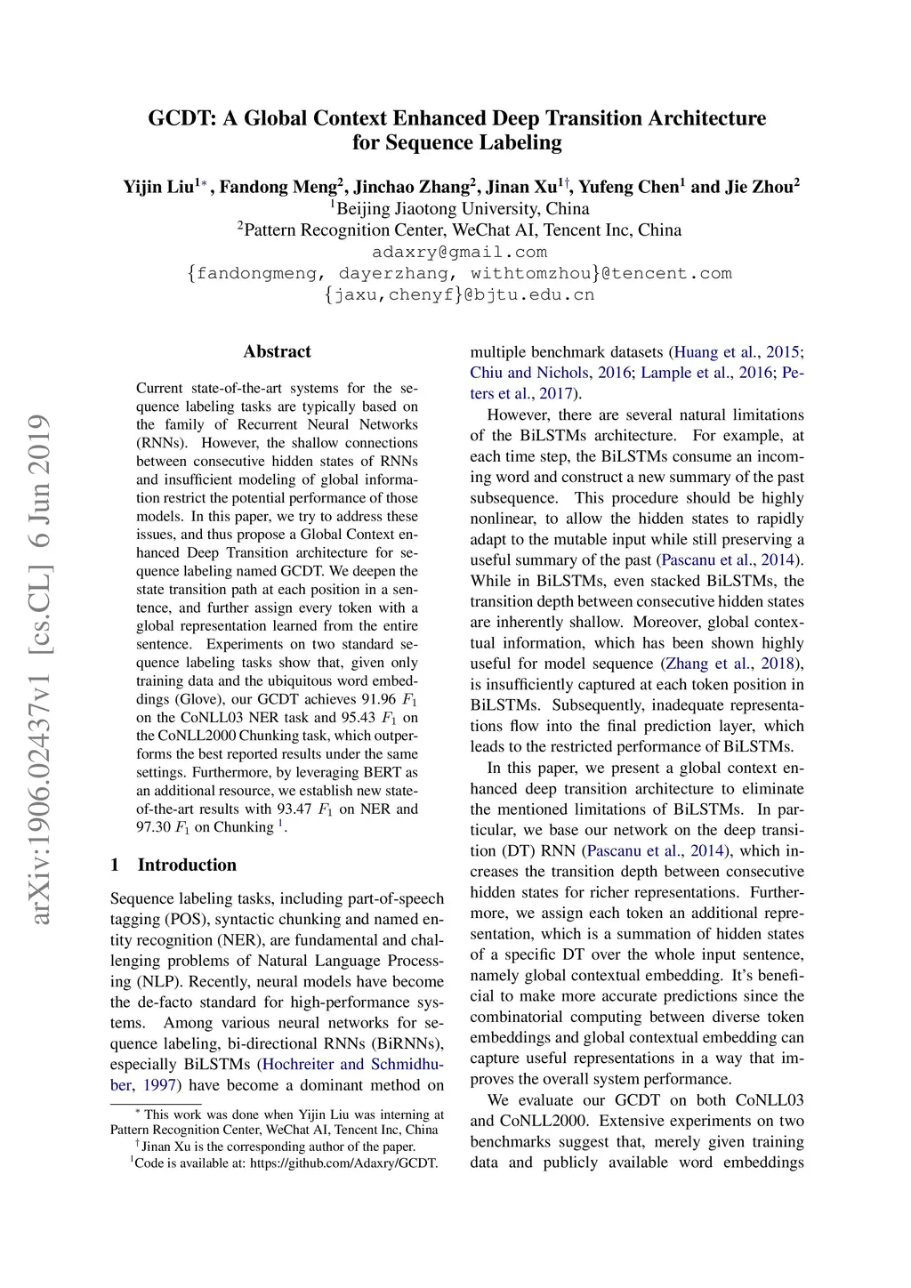 GCDT: A Global Context Enhanced Deep Transition Architecture for