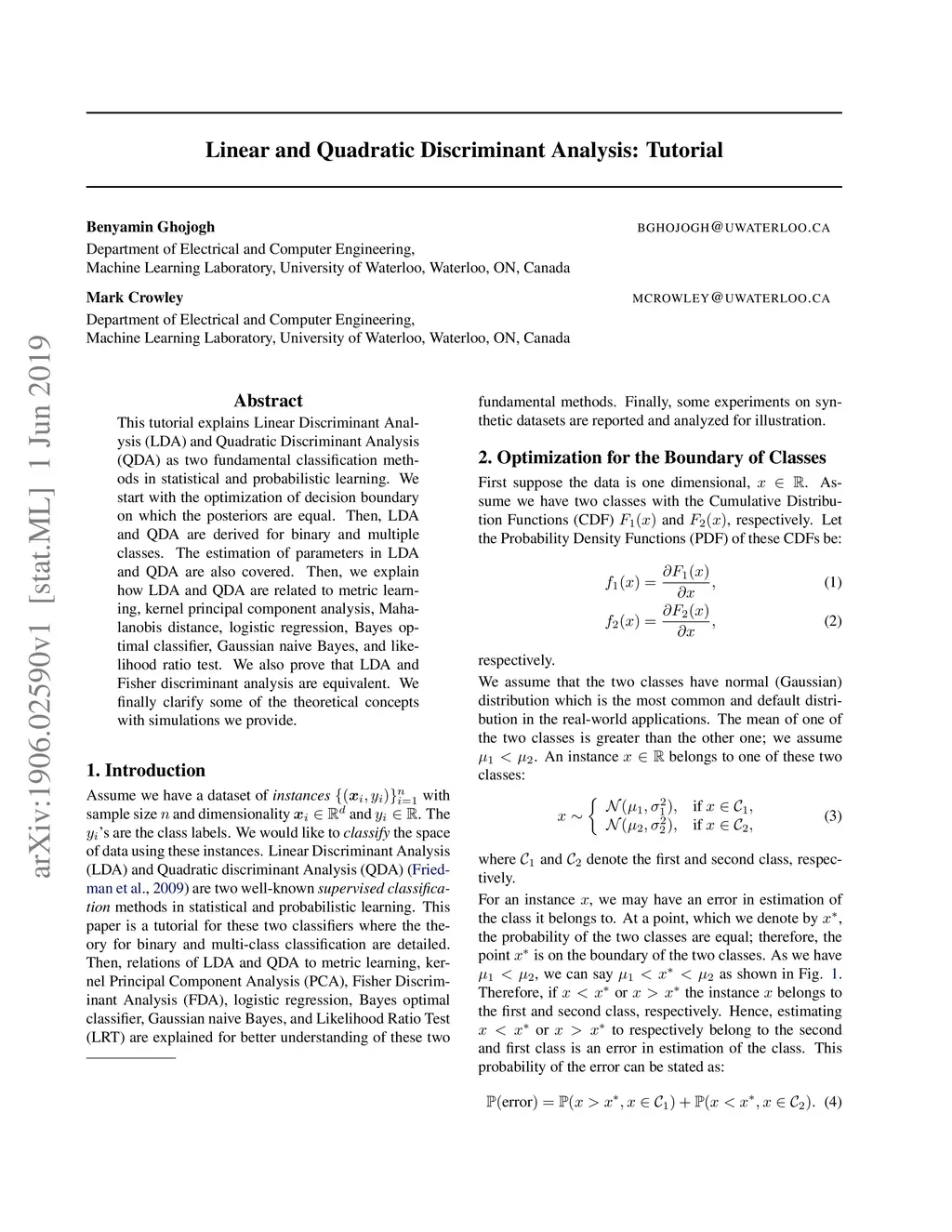 Linear and Quadratic Discriminant Analysis: Tutorial