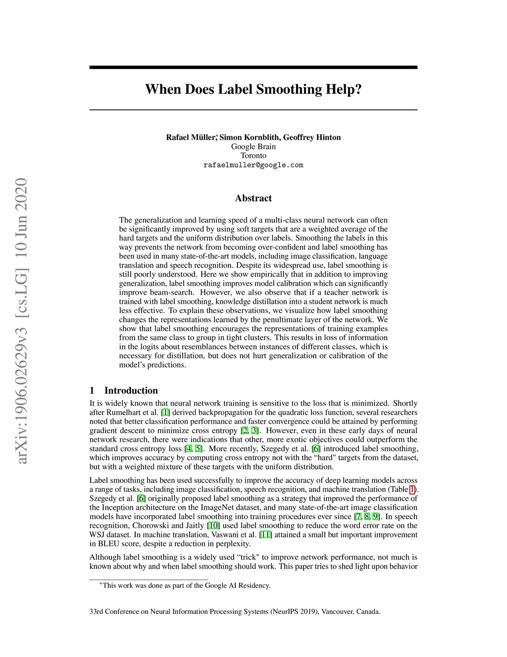 The generalization and learning speed of a multi-class neural network can often be significantly improved by using soft targets that are a weighted average of the hard targets and the uniform distribution over labels. Smoothing the labels in this way prevents the network from becoming over-confident and label smoothing has been used in many state-of-the-art models, including image classification, language translation and speech recognition. Despite its widespread use, label smoothing is still poorly understood. Here we show empirically that in addition to improving generalization, label smoothing improves model calibration which can significantly improve beam-search. However, we also observe that if a teacher network is trained with label smoothing, knowledge distillation into a student network is much less effective. To explain these observations, we visualize how label smoothing changes the representations learned by the penultimate layer of the network. We show that label smoothing encourages the representations of training examples from the same class to group in tight clusters. This results in loss of information in the logits about resemblances between instances of different classes, which is necessary for distillation, but does not hurt generalization or calibration of the model's predictions.