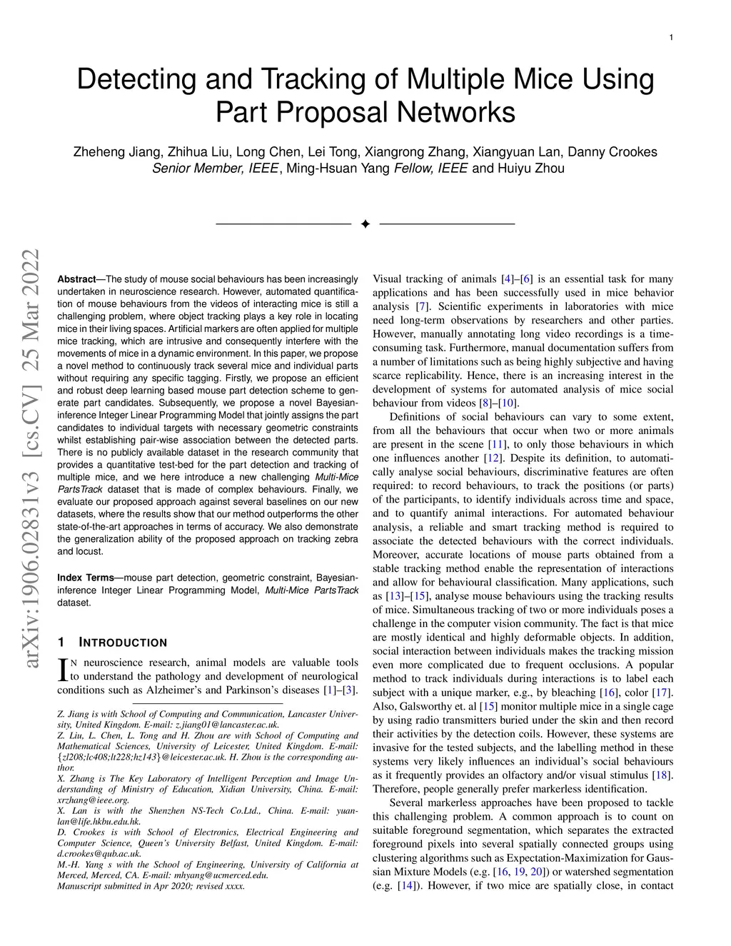 Detection and Tracking of Multiple Mice Using Part Proposal Networks