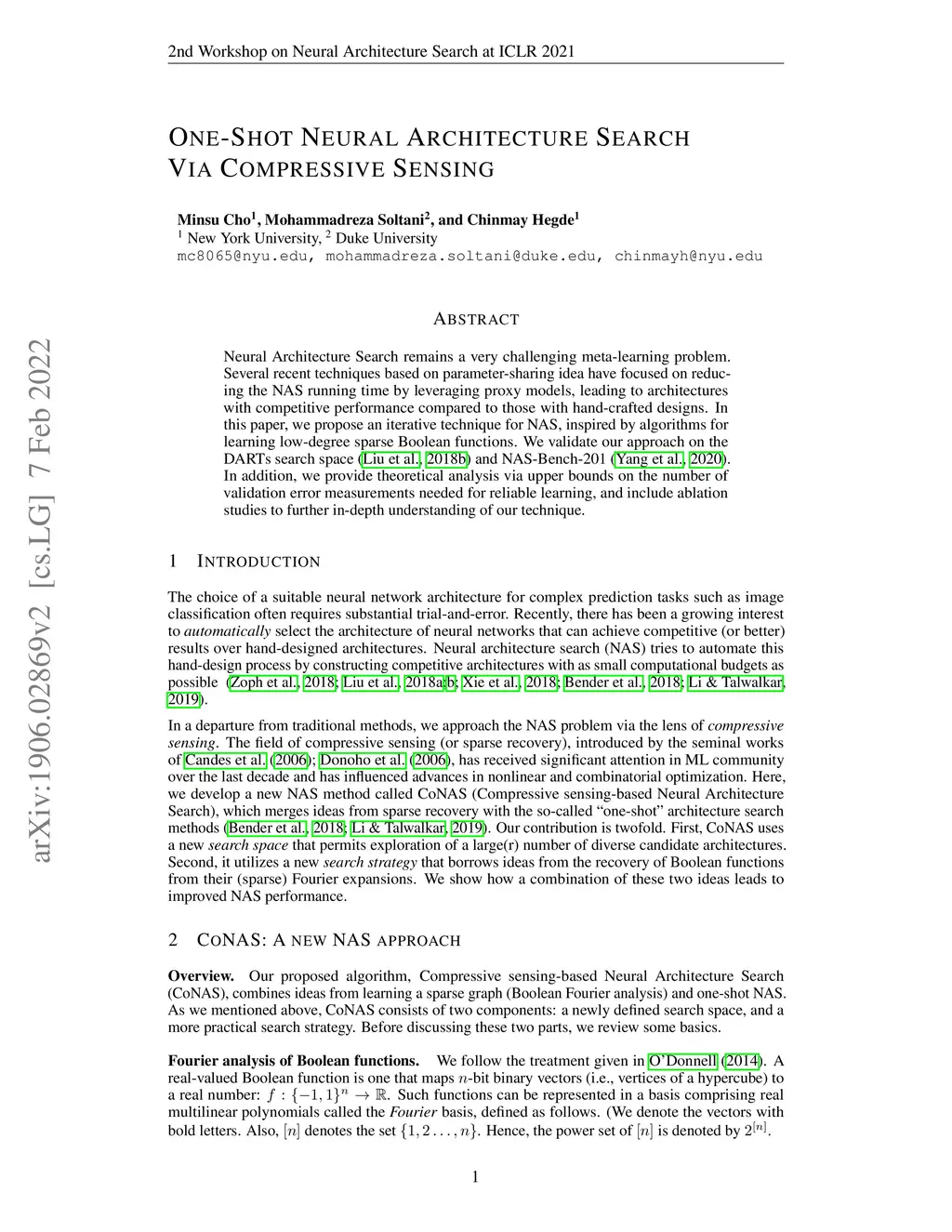 Neural Architecture Search remains a very challenging meta-learning problem. Several recent techniques based on parameter-sharing idea have focused on reducing the NAS running time by leveraging proxy models, leading to architectures with competitive performance compared to those with hand-crafted designs. In this paper, we propose an iterative technique for NAS, inspired by algorithms for learning low-degree sparse Boolean functions. We validate our approach on the DARTs search space (Liu et al., 2018b) and NAS-Bench-201 (Yang et al., 2020). In addition, we provide theoretical analysis via upper bounds on the number of validation error measurements needed for reliable learning, and include ablation studies to further in-depth understanding of our technique.