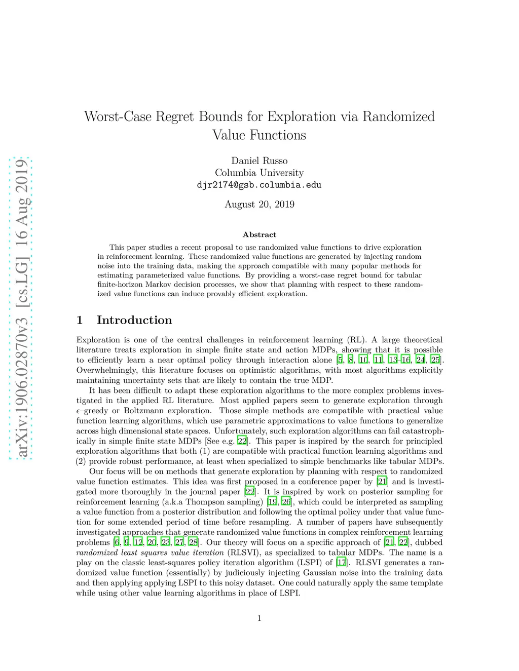 Worst-Case Regret Bounds for Exploration via Randomized Value Functions
