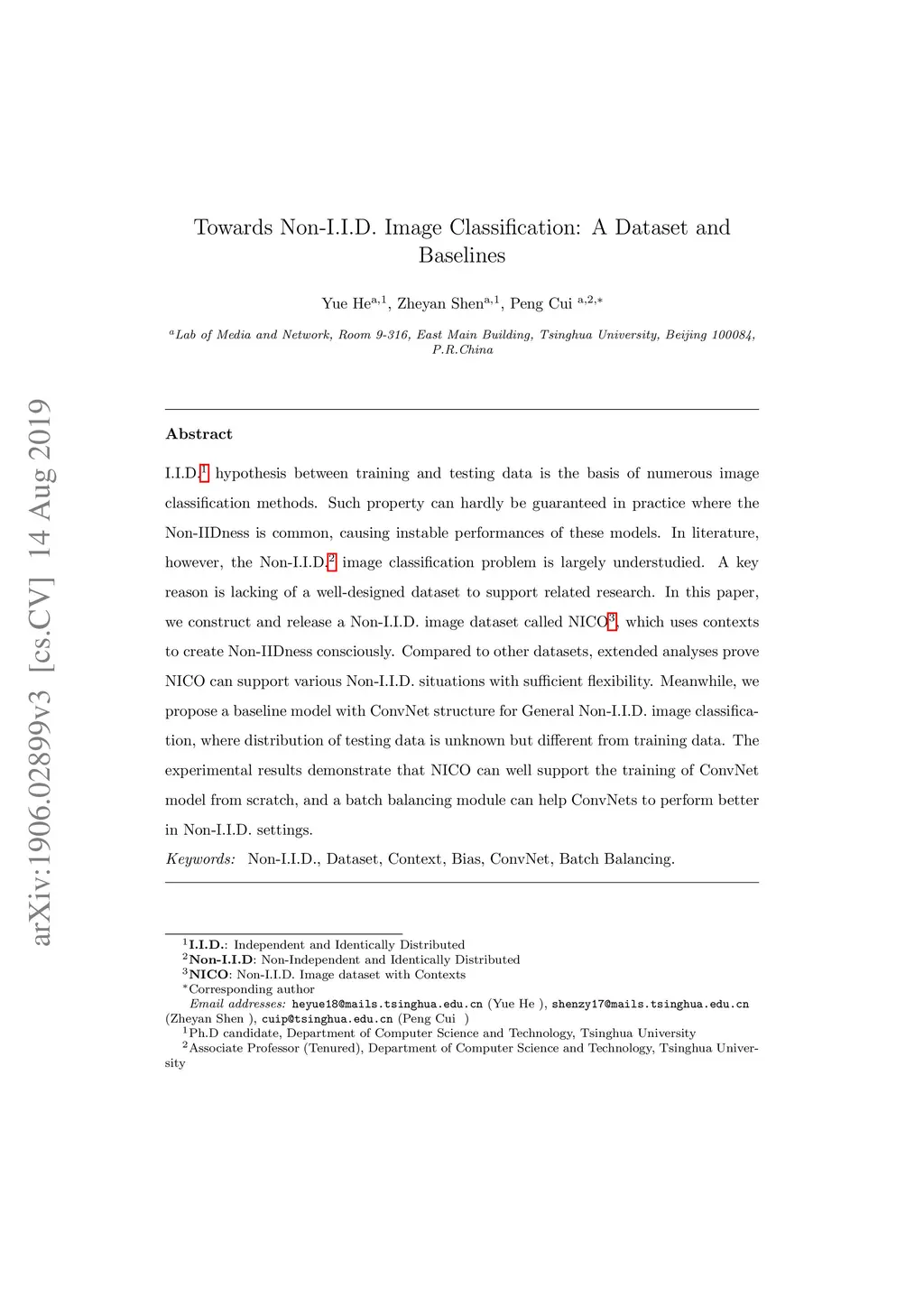 I.I.D. hypothesis between training and testing data is the basis of numerous image classification methods. Such property can hardly be guaranteed in practice where the Non-IIDness is common, causing instable performances of these models. In literature, however, the Non-I.I.D. image classification problem is largely understudied. A key reason is lacking of a well-designed dataset to support related research. In this paper, we construct and release a Non-I.I.D. image dataset called NICO, which uses contexts to create Non-IIDness consciously. Compared to other datasets, extended analyses prove NICO can support various Non-I.I.D. situations with sufficient flexibility. Meanwhile, we propose a baseline model with ConvNet structure for General Non-I.I.D. image classification, where distribution of testing data is unknown but different from training data. The experimental results demonstrate that NICO can well support the training of ConvNet model from scratch, and a batch balancing module can help ConvNets to perform better in Non-I.I.D. settings.