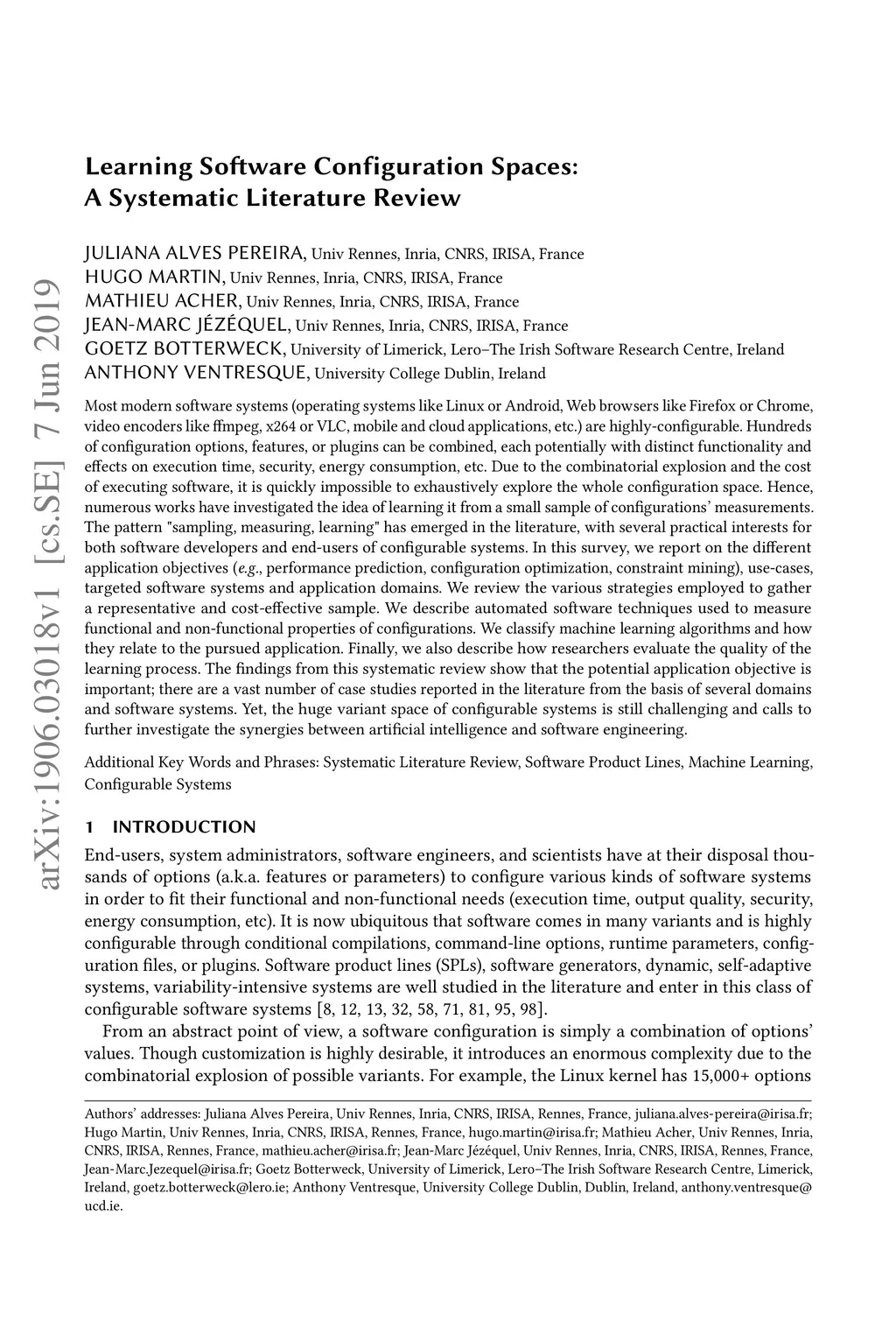 Learning Software Configuration Spaces: A Systematic Literature Review