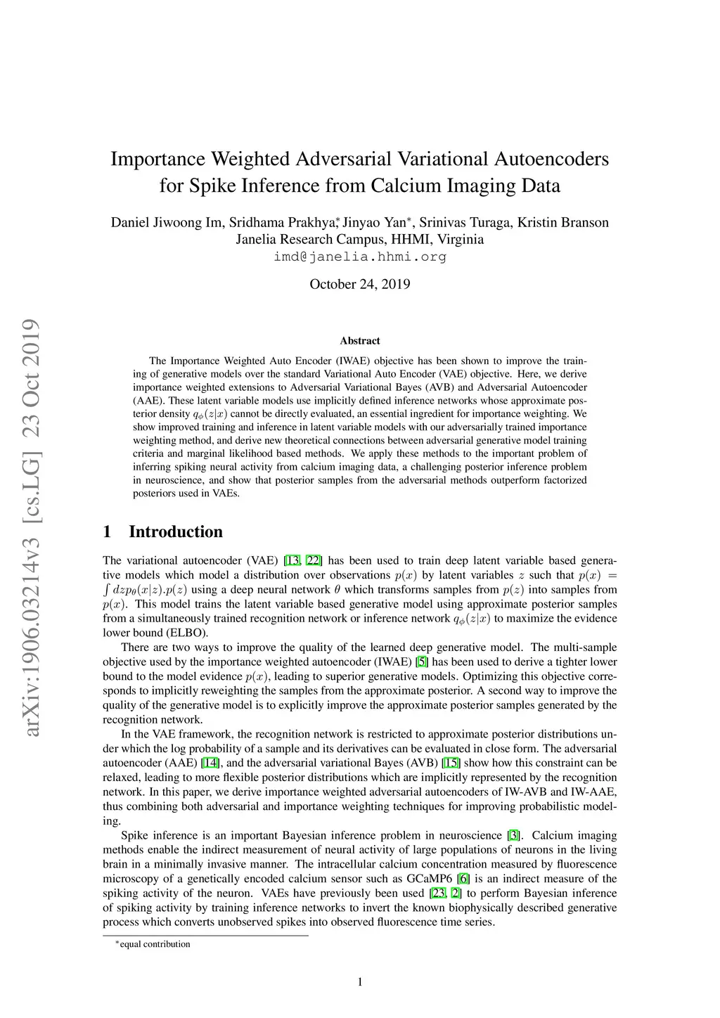 Importance Weighted Adversarial Variational Autoencoders for Spike