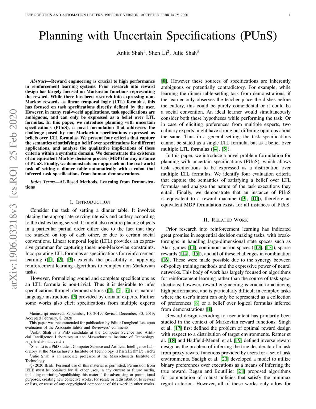 Planning With Uncertain Specifications (PUnS)