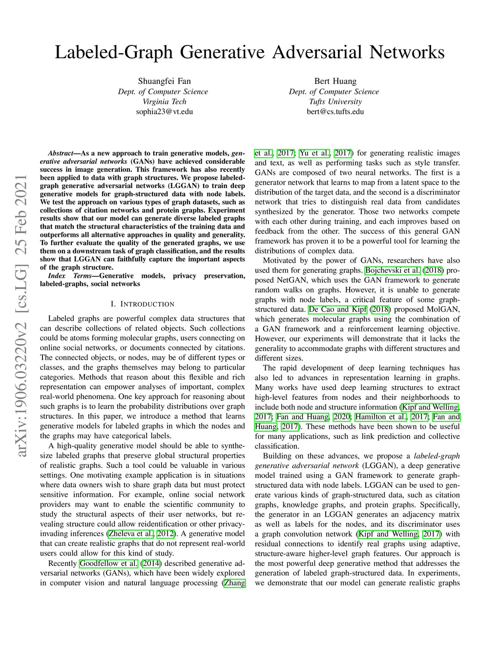 As a new approach to train generative models, \emph{generative adversarial networks} (GANs) have achieved considerable success in image generation. This framework has also recently been applied to data with graph structures. We propose labeled-graph generative adversarial networks (LGGAN) to train deep generative models for graph-structured data with node labels. We test the approach on various types of graph datasets, such as collections of citation networks and protein graphs. Experiment results show that our model can generate diverse labeled graphs that match the structural characteristics of the training data and outperforms all alternative approaches in quality and generality. To further evaluate the quality of the generated graphs, we use them on a downstream task of graph classification, and the results show that LGGAN can faithfully capture the important aspects of the graph structure.