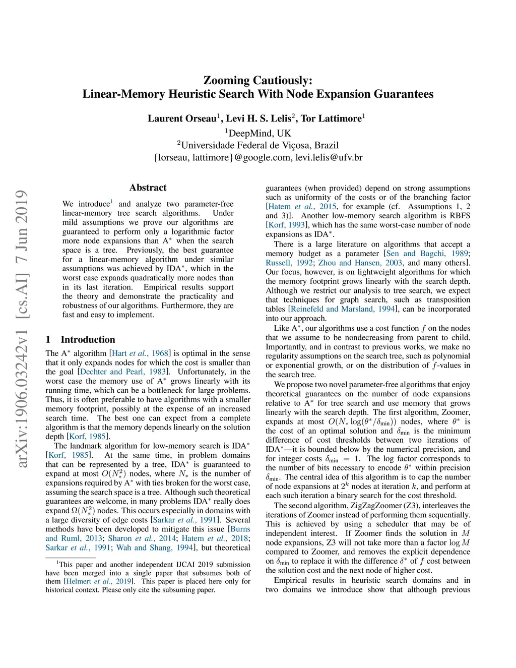 Zooming Cautiously: Linear-Memory Heuristic Search With Node Expansion