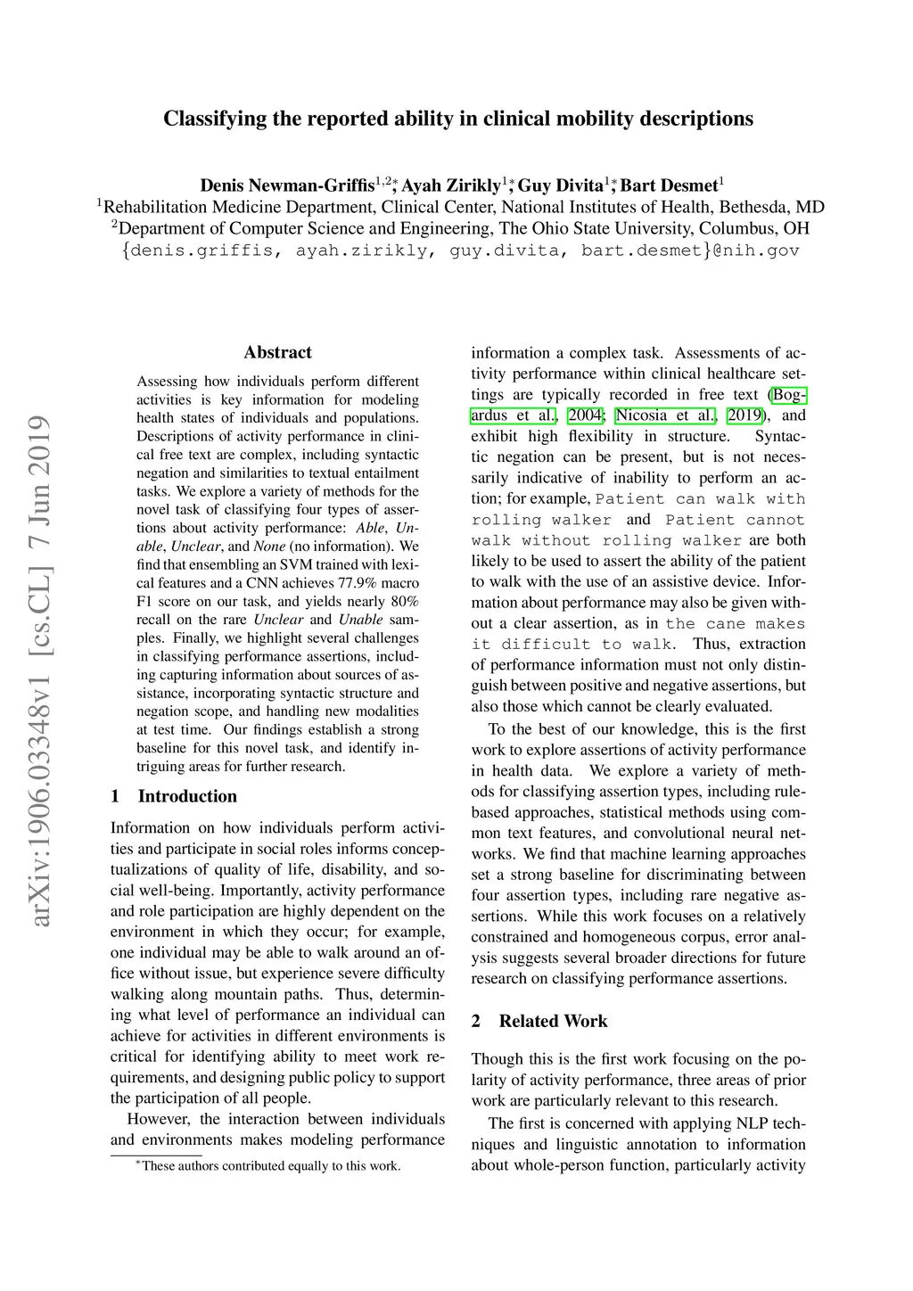 Classifying the reported ability in clinical mobility descriptions