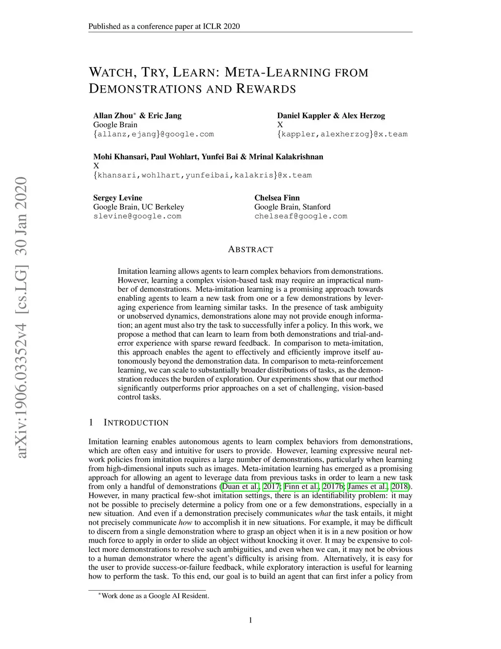 Watch, Try, Learn: Meta-Learning from Demonstrations and Reward