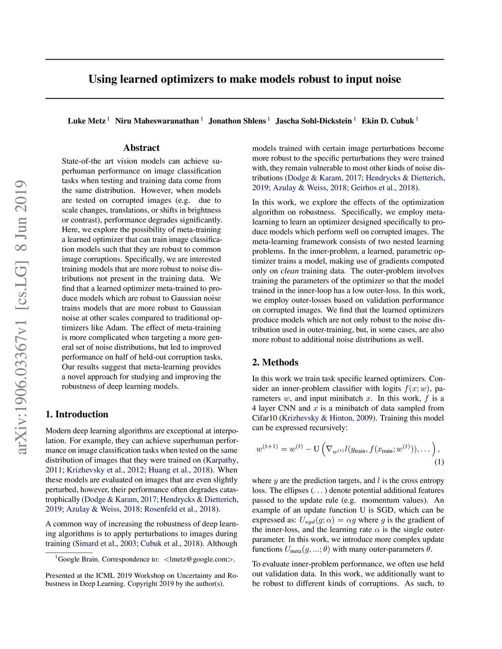 Using learned optimizers to make models robust to input noise