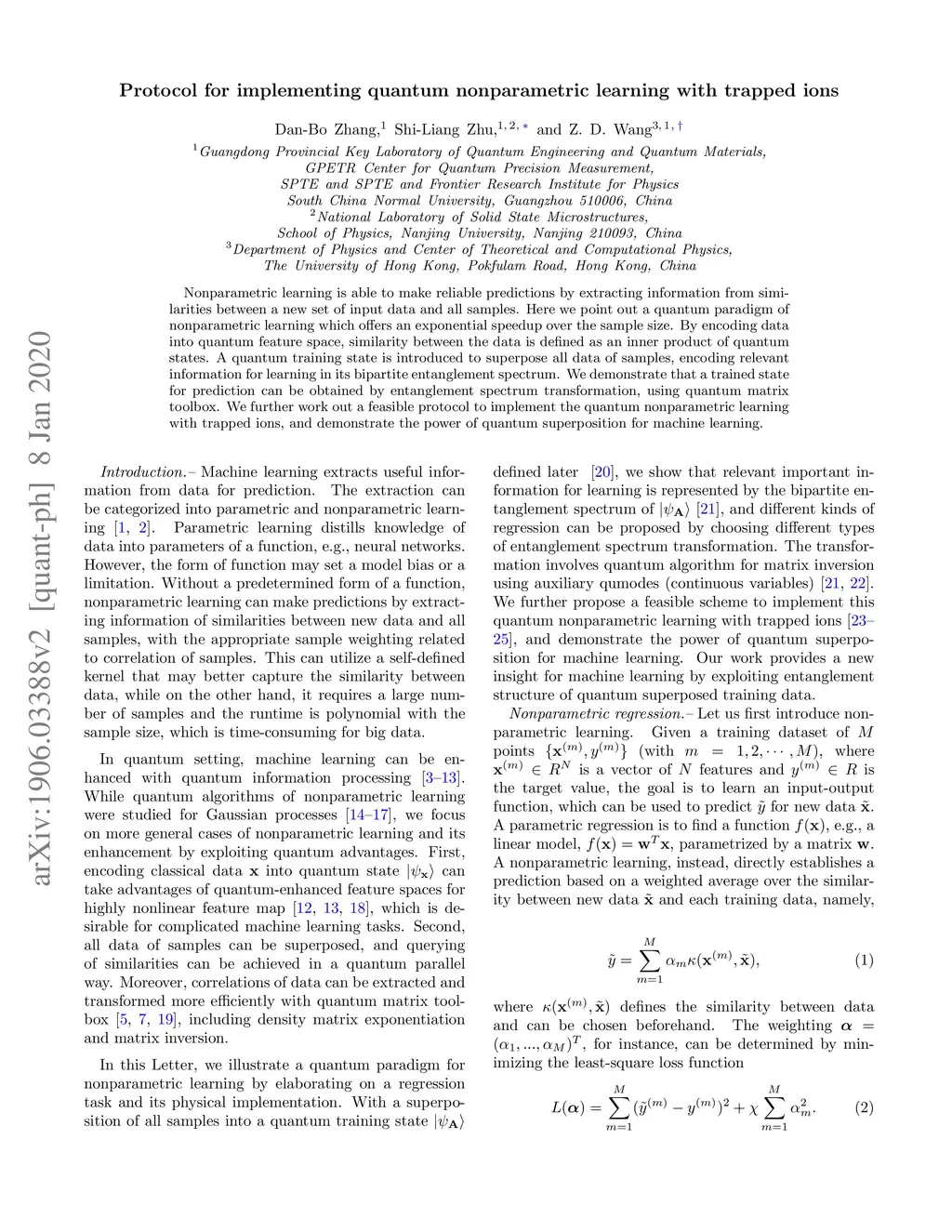 Protocol for implementing quantum nonparametric learning with trapped
