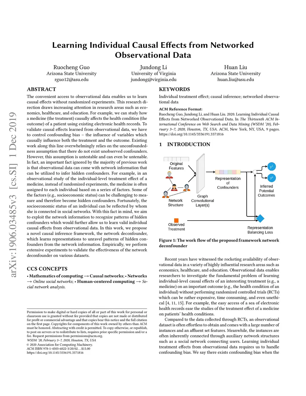Convenient access to observational data enables us to learn causal effects without randomized experiments. This research direction draws increasing attention in research areas such as economics, healthcare, and education. For example, we can study how a medicine (the treatment) causally affects the health condition (the outcome) of a patient using existing electronic health records. To validate causal effects learned from observational data, we have to control confounding bias -- the influence of variables which causally influence both the treatment and the outcome. Existing work along this line overwhelmingly relies on the unconfoundedness assumption that there do not exist unobserved confounders. However, this assumption is untestable and can even be untenable. In fact, an important fact ignored by the majority of previous work is that observational data can come with network information that can be utilized to infer hidden confounders. For example, in an observational study of the individual-level treatment effect of a medicine, instead of randomized experiments, the medicine is often assigned to each individual based on a series of factors. Some of the factors (e.g., socioeconomic status) can be challenging to measure and therefore become hidden confounders. Fortunately, the socioeconomic status of an individual can be reflected by whom she is connected in social networks. With this fact in mind, we aim to exploit the network information to recognize patterns of hidden confounders which would further allow us to learn valid individual causal effects from observational data. In this work, we propose a novel causal inference framework, the network deconfounder, which learns representations to unravel patterns of hidden confounders from the network information. Empirically, we perform extensive experiments to validate the effectiveness of the network deconfounder on various datasets.