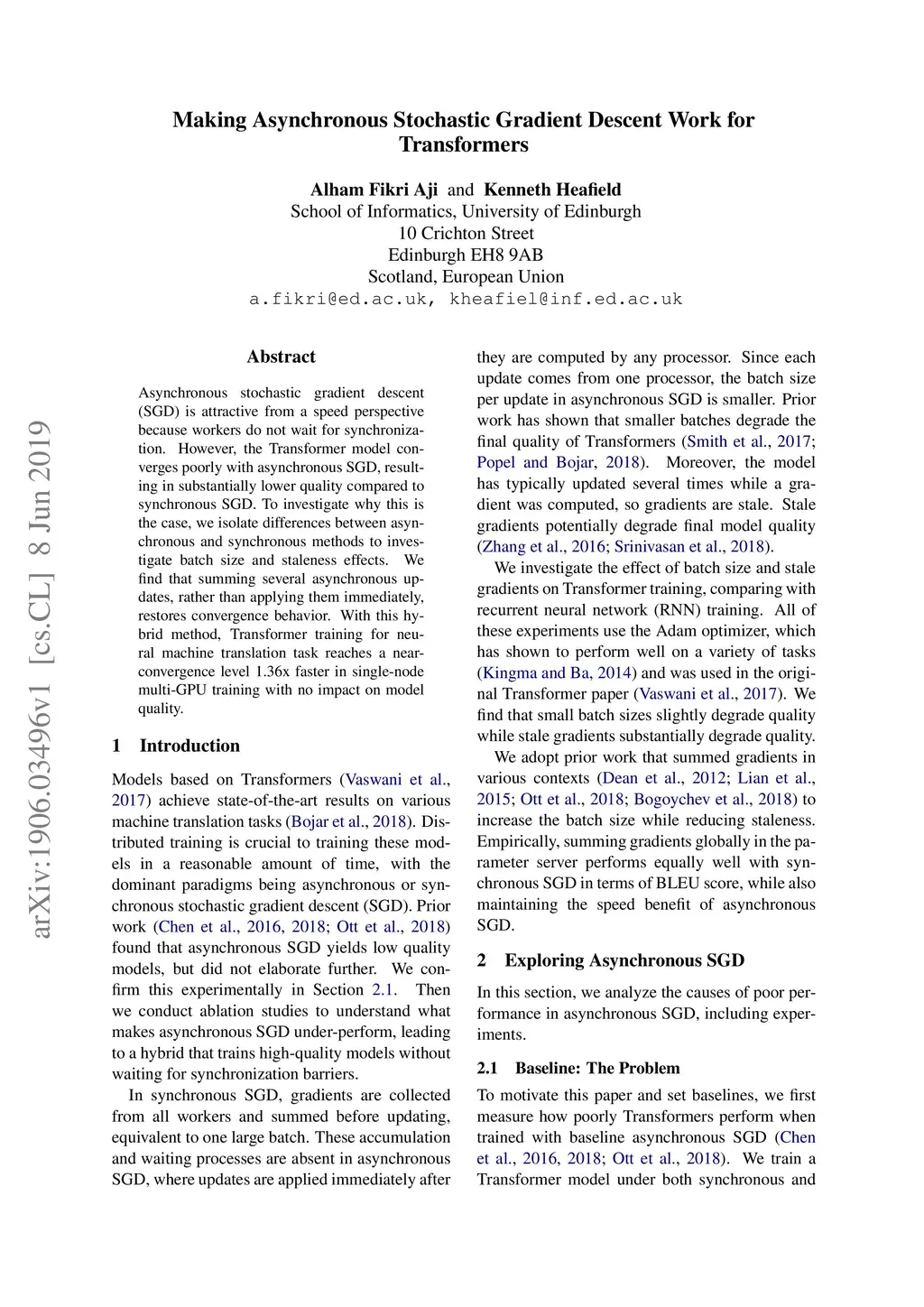 Making Asynchronous Stochastic Gradient Descent Work for Transformers