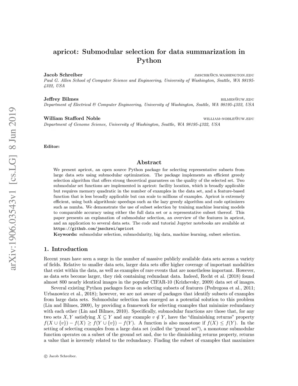 apricot: Submodular selection for data summarization in Python