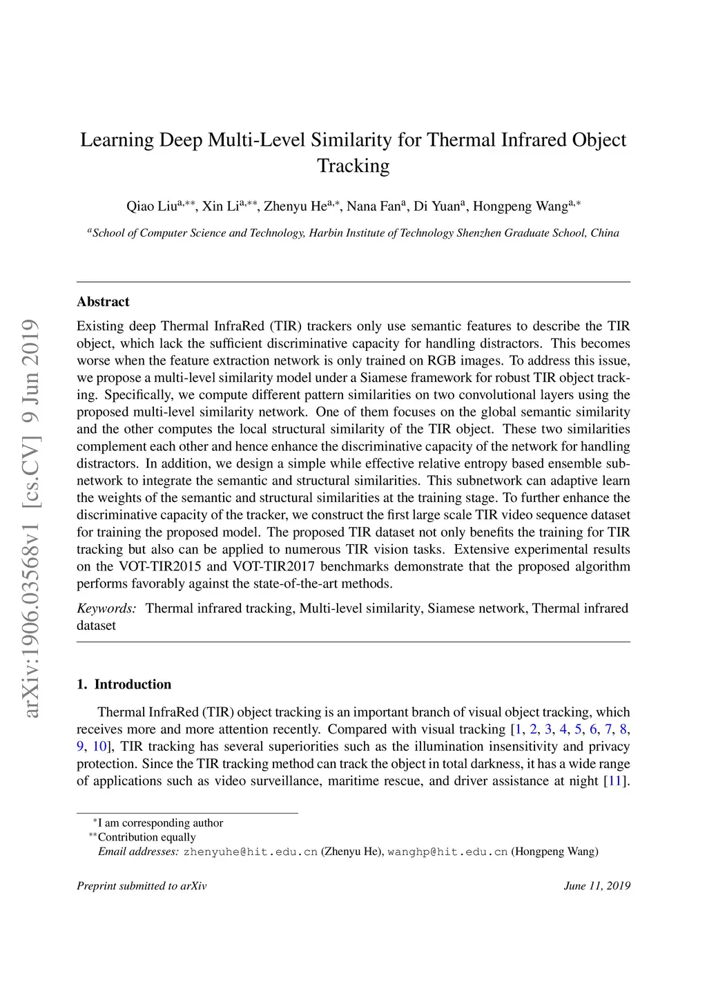 Learning Deep Multi-Level Similarity for Thermal Infrared Object