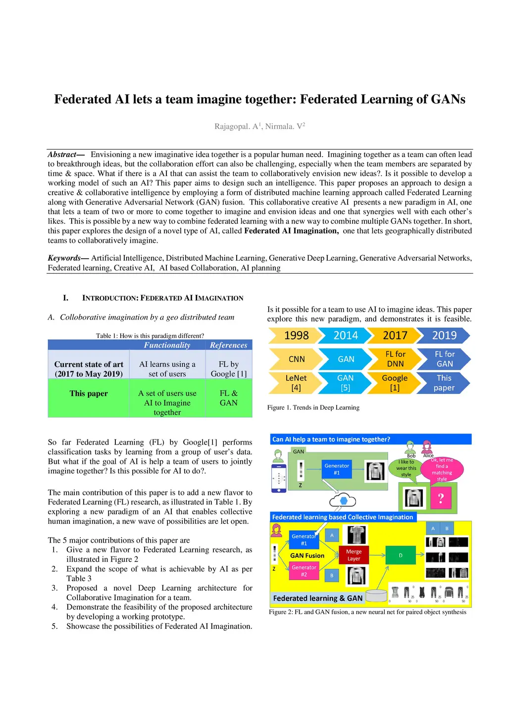 Envisioning a new imaginative idea together is a popular human need. Imagining together as a team can often lead to breakthrough ideas, but the collaboration effort can also be challenging, especially when the team members are separated by time and space. What if there is a AI that can assist the team to collaboratively envision new ideas?. Is it possible to develop a working model of such an AI? This paper aims to design such an intelligence. This paper proposes a approach to design a creative and collaborative intelligence by employing a form of distributed machine learning approach called Federated Learning along with fusion on Generative Adversarial Networks, GAN. This collaborative creative AI presents a new paradigm in AI, one that lets a team of two or more to come together to imagine and envision ideas that synergies well with interests of all members of the team. In short, this paper explores the design of a novel type of AI paradigm, called Federated AI Imagination, one that lets geographically distributed teams to collaboratively imagine.