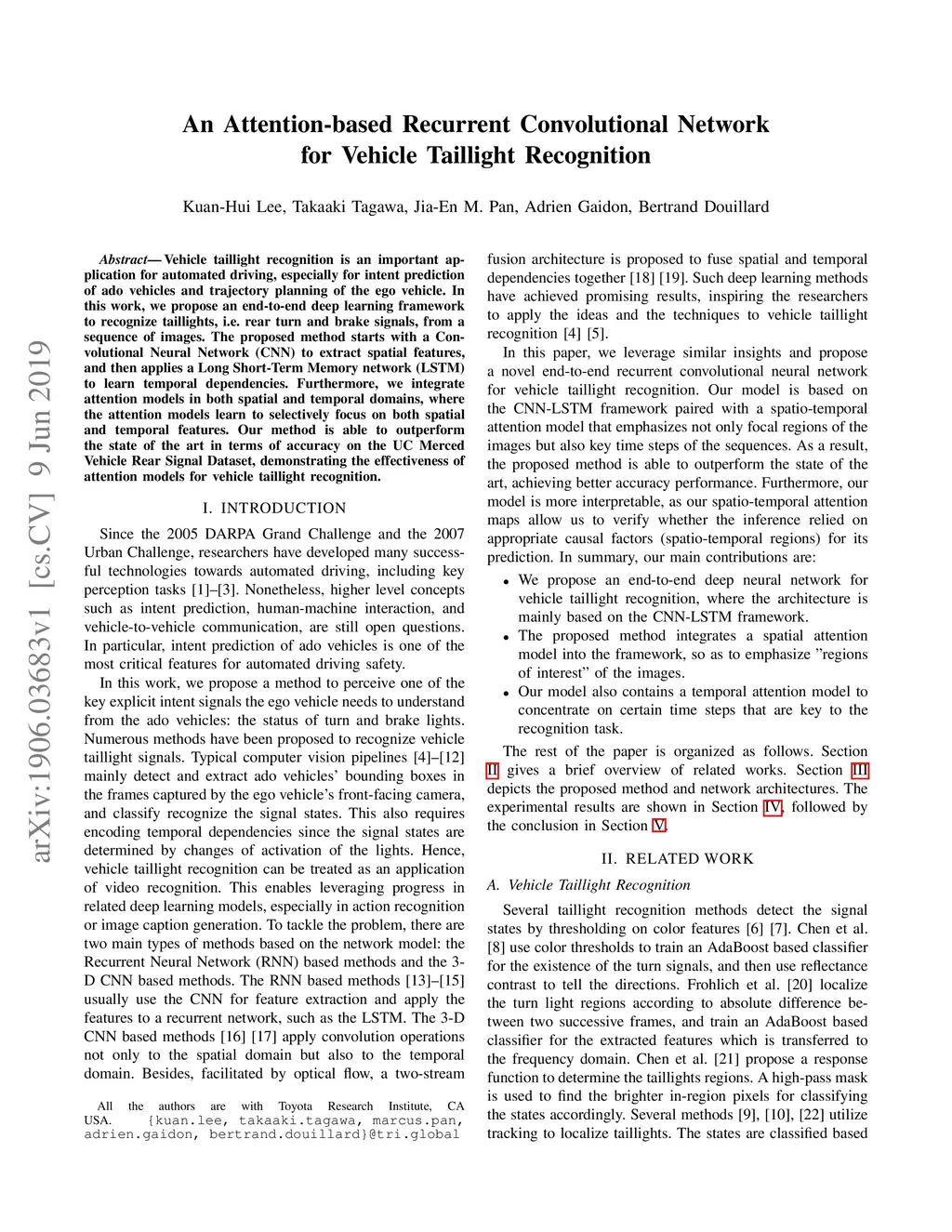 An Attention-based Recurrent Convolutional Network for Vehicle Taillight