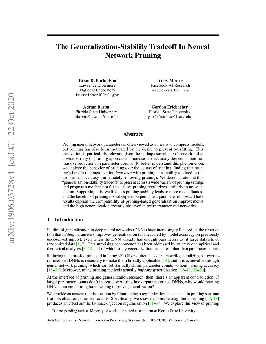 The Generalization-Stability Tradeoff In Neural Network Pruning