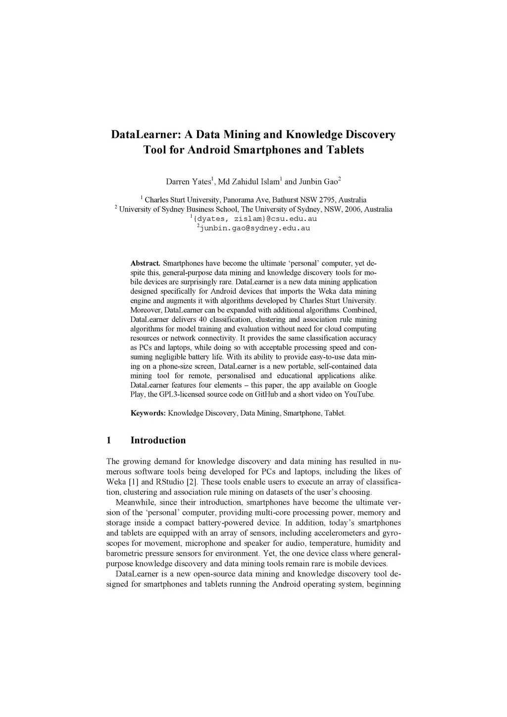 DataLearner: A Data Mining and Knowledge Discovery Tool for Android