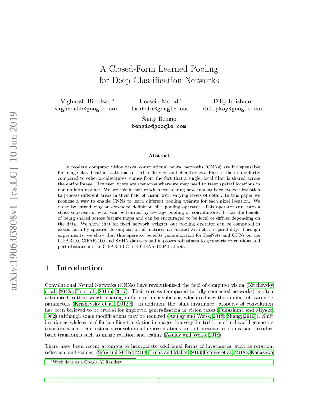 A Closed-Form Learned Pooling for Deep Classification Networks