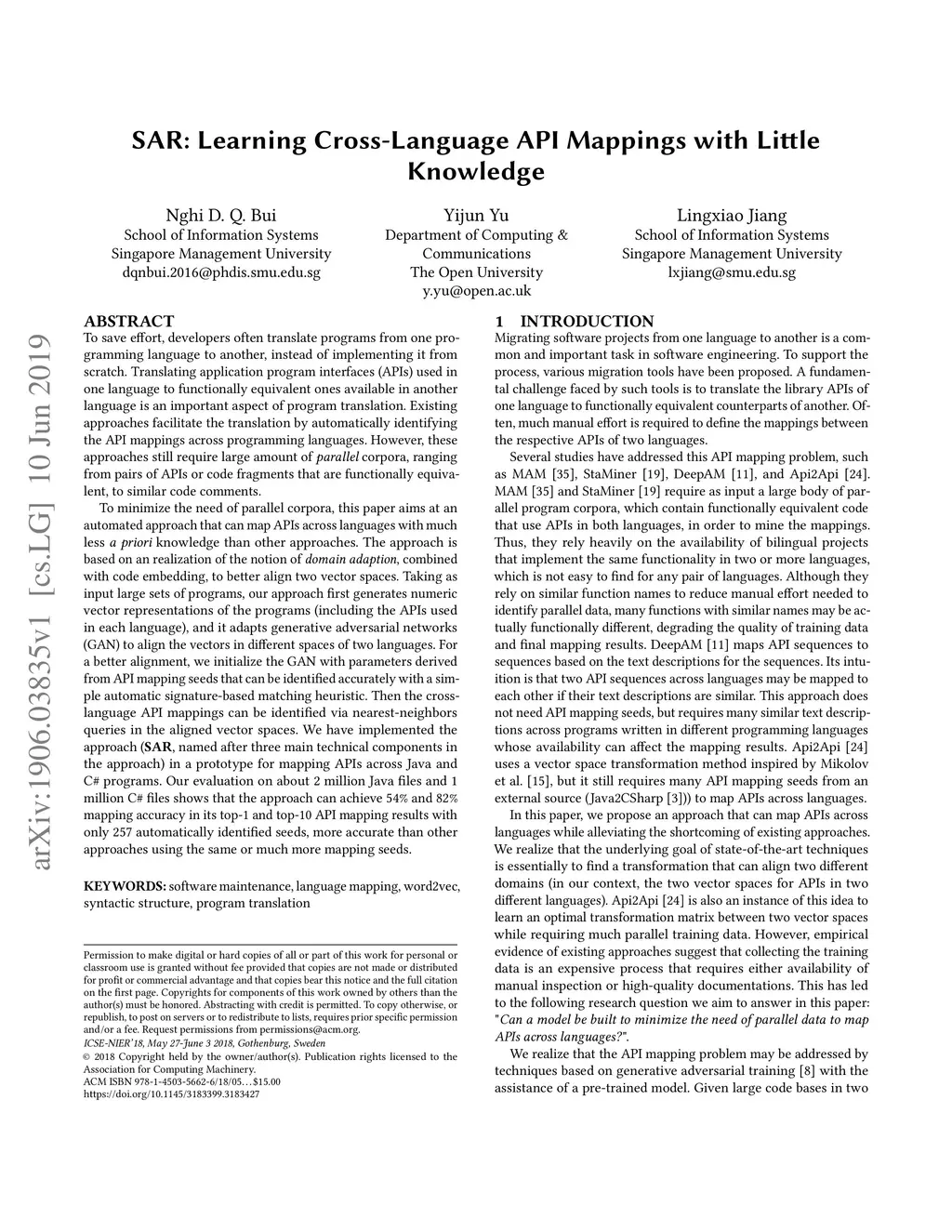 SAR: Learning Cross-Language API Mappings with Little Knowledge