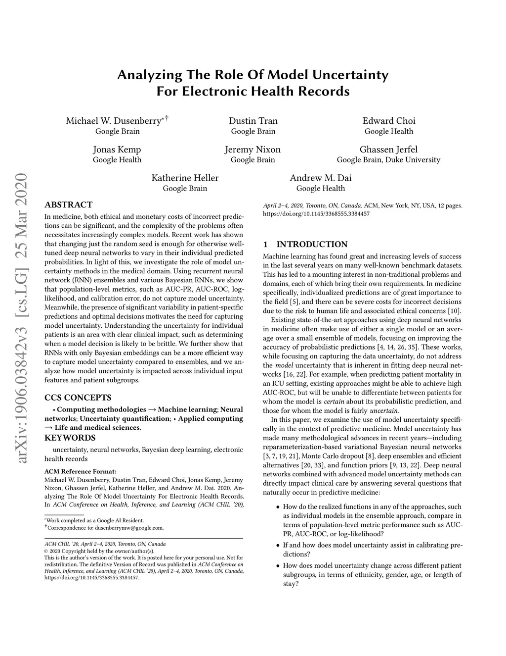 ACM Conference on Health, Inference, and Learning (CHIL), 2019