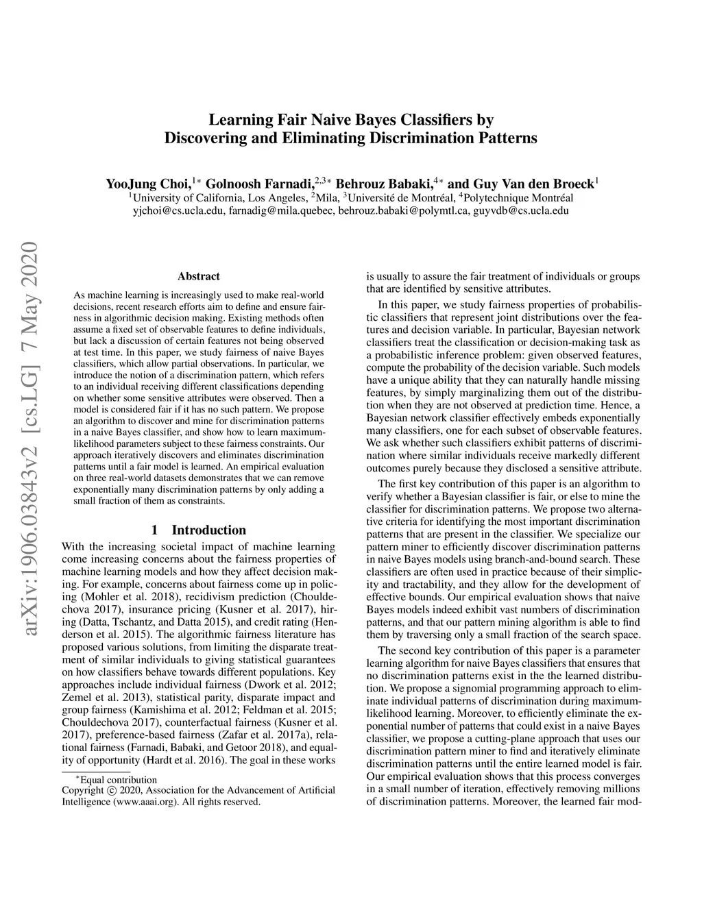 Learning Fair Naive Bayes Classifiers by Discovering and Eliminating