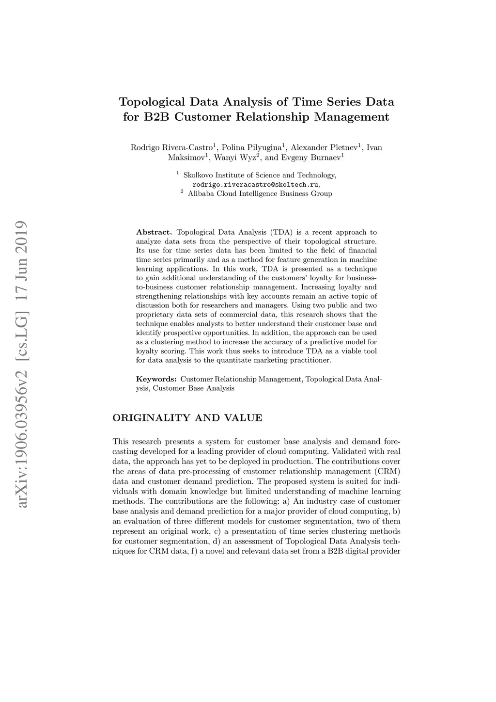Topological Data Analysis (TDA) is a recent approach to analyze data sets from the perspective of their topological structure. Its use for time series data has been limited to the field of financial time series primarily and as a method for feature generation in machine learning applications. In this work, TDA is presented as a technique to gain additional understanding of the customers' loyalty for business-to-business customer relationship management. Increasing loyalty and strengthening relationships with key accounts remain an active topic of discussion both for researchers and managers. Using two public and two proprietary data sets of commercial data, this research shows that the technique enables analysts to better understand their customer base and identify prospective opportunities. In addition, the approach can be used as a clustering method to increase the accuracy of a predictive model for loyalty scoring. This work thus seeks to introduce TDA as a viable tool for data analysis to the quantitate marketing practitioner.