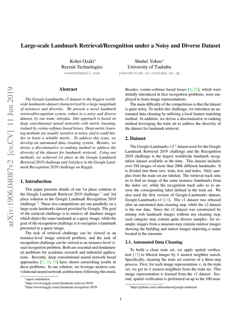 The Google-Landmarks-v2 dataset is the biggest worldwide landmarks dataset characterized by a large magnitude of noisiness and diversity. We present a novel landmark retrieval/recognition system, robust to a noisy and diverse dataset, by our team, smlyaka. Our approach is based on deep convolutional neural networks with metric learning, trained by cosine-softmax based losses. Deep metric learning methods are usually sensitive to noise, and it could hinder to learn a reliable metric. To address this issue, we develop an automated data cleaning system. Besides, we devise a discriminative re-ranking method to address the diversity of the dataset for landmark retrieval. Using our methods, we achieved 1st place in the Google Landmark Retrieval 2019 challenge and 3rd place in the Google Landmark Recognition 2019 challenge on Kaggle.