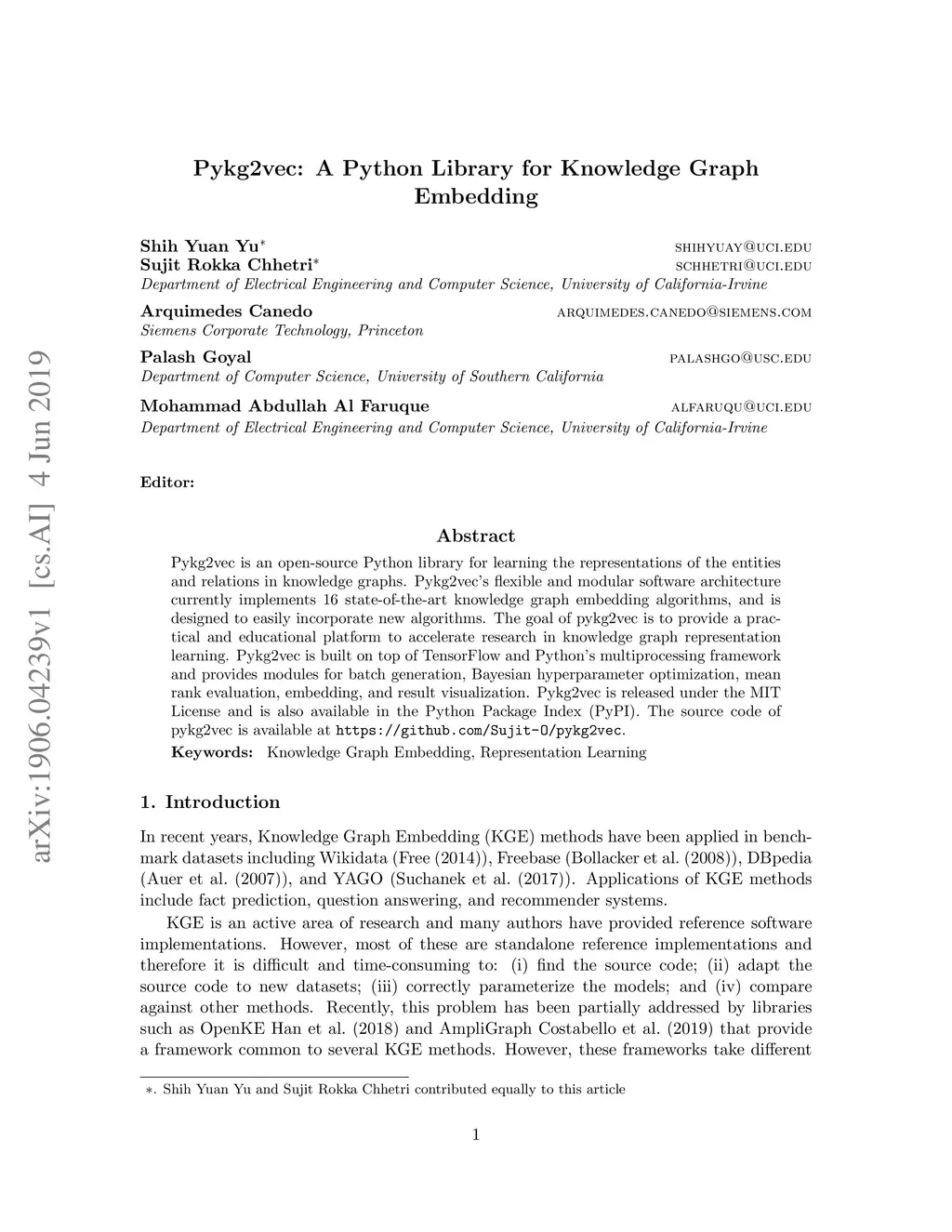Pykg2vec: A Python Library for Knowledge Graph Embedding