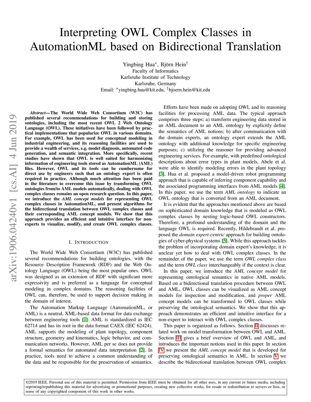 Interpreting OWL Complex Classes in AutomationML based on Bidirectional