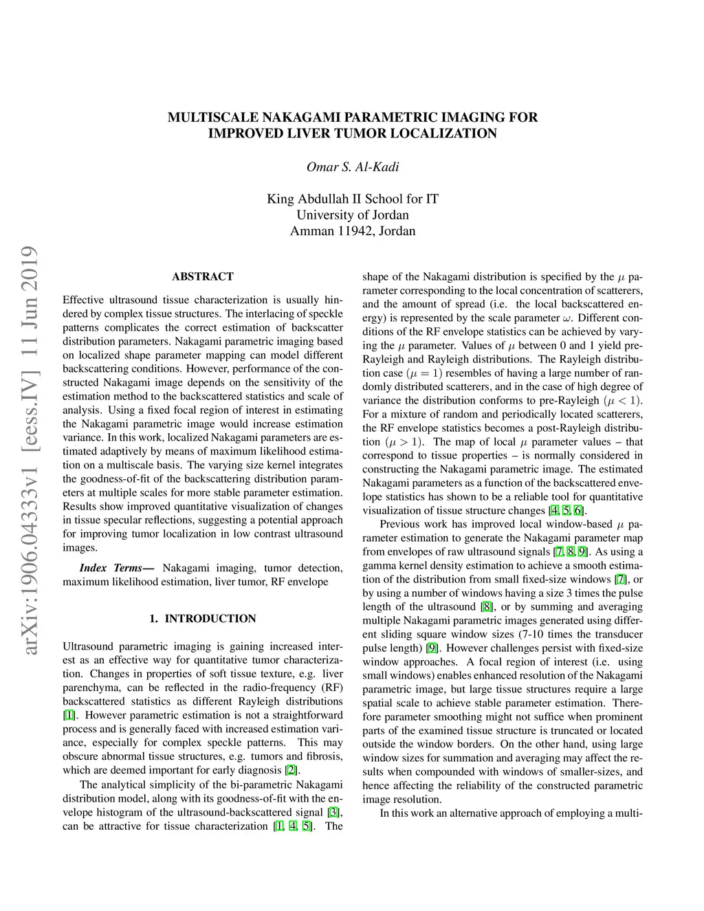 Multiscale Nakagami parametric imaging for improved liver tumor