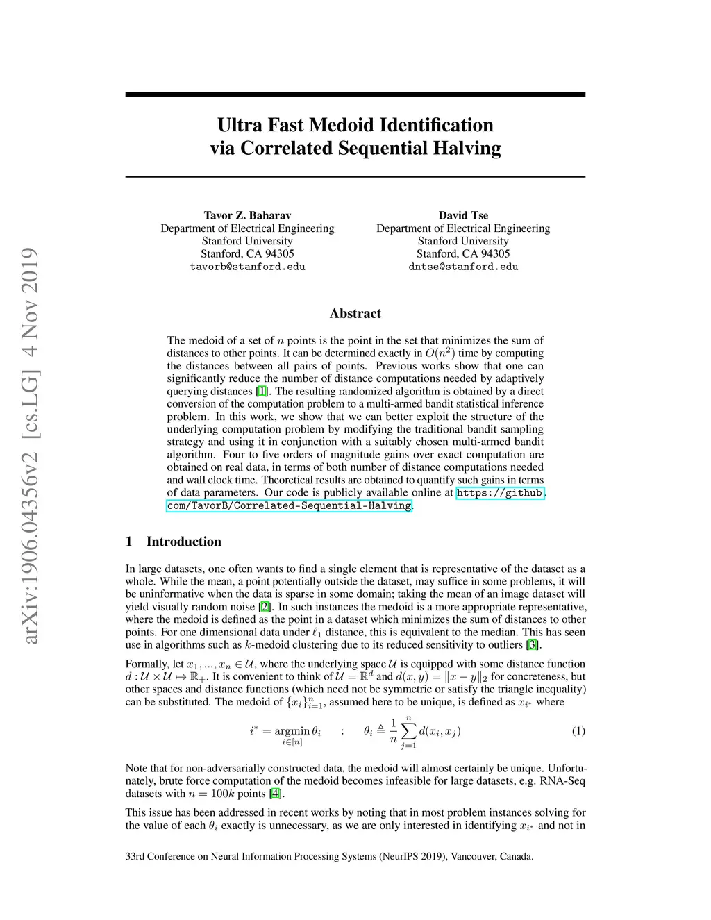 Ultra Fast Medoid Identification via Correlated Sequential Halving
