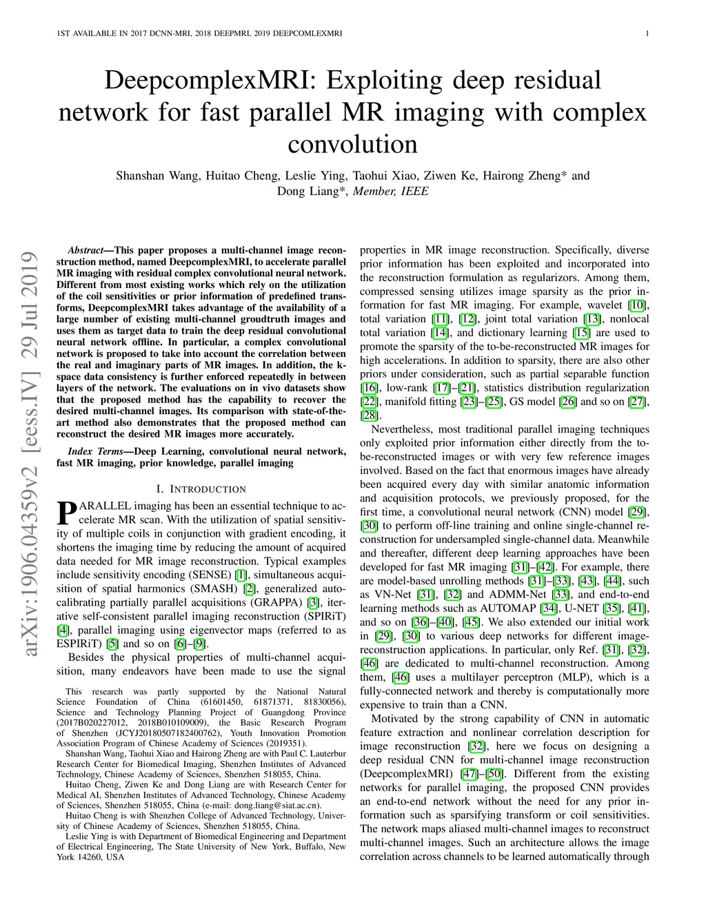 DeepcomplexMRI: Exploiting deep residual network for fast parallel MR