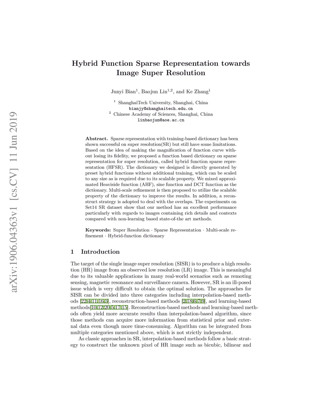 Hybrid Function Sparse Representation towards Image Super Resolution
