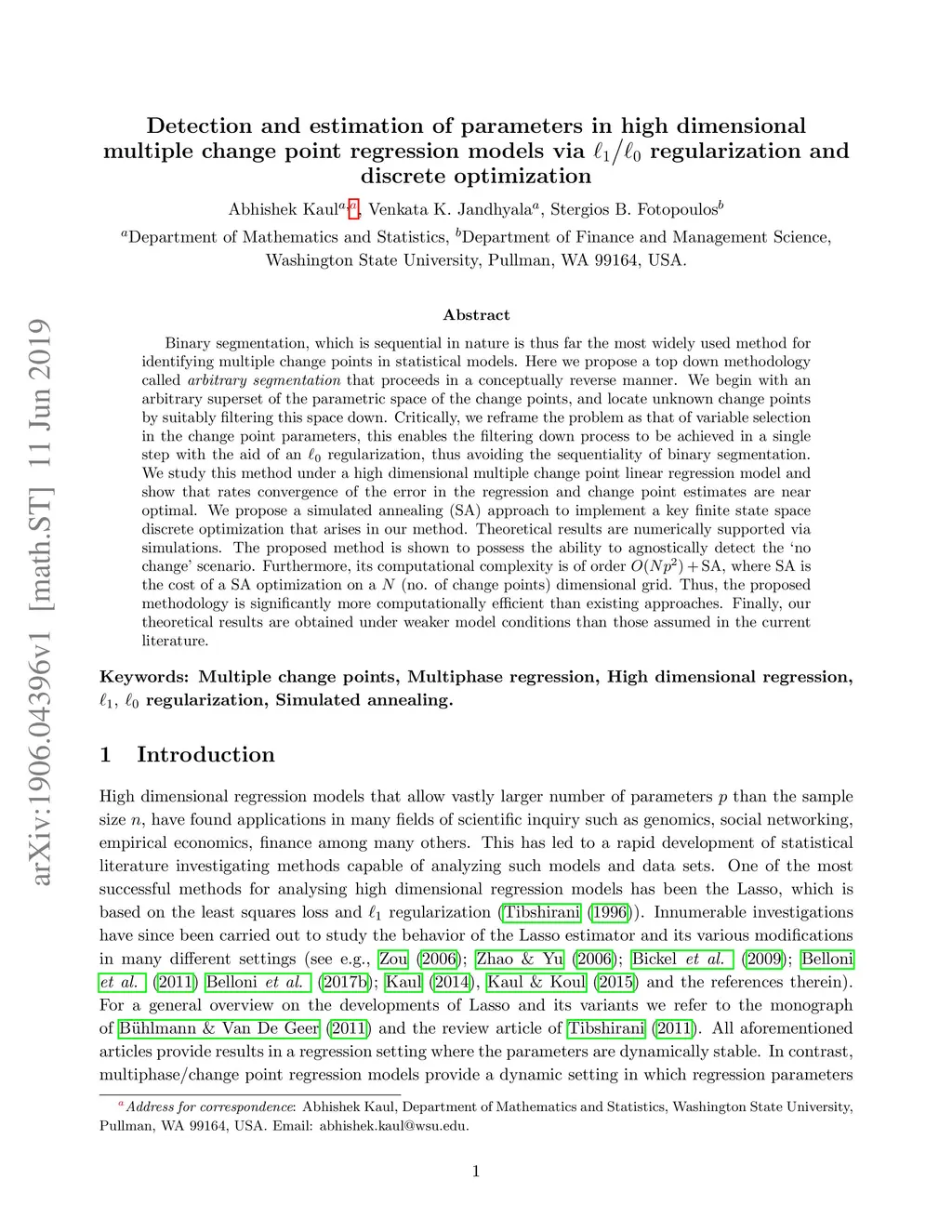 Binary segmentation, which is sequential in nature is thus far the most widely used method for identifying multiple change points in statistical models. Here we propose a top down methodology called arbitrary segmentation that proceeds in a conceptually reverse manner. We begin with an arbitrary superset of the parametric space of the change points, and locate unknown change points by suitably filtering this space down. Critically, we reframe the problem as that of variable selection in the change point parameters, this enables the filtering down process to be achieved in a single step with the aid of an regularization, thus avoiding the sequentiality of binary segmentation. We study this method under a high dimensional multiple change point linear regression model and show that rates convergence of the error in the regression and change point estimates are near optimal. We propose a simulated annealing (SA) approach to implement a key finite state space discrete optimization that arises in our method. Theoretical results are numerically supported via simulations. The proposed method is shown to possess the ability to agnostically detect the `no change' scenario. Furthermore, its computational complexity is of order +SA, where SA is the cost of a SA optimization on a (no. of change points) dimensional grid. Thus, the proposed methodology is significantly more computationally efficient than existing approaches. Finally, our theoretical results are obtained under weaker model conditions than those assumed in the current literature.