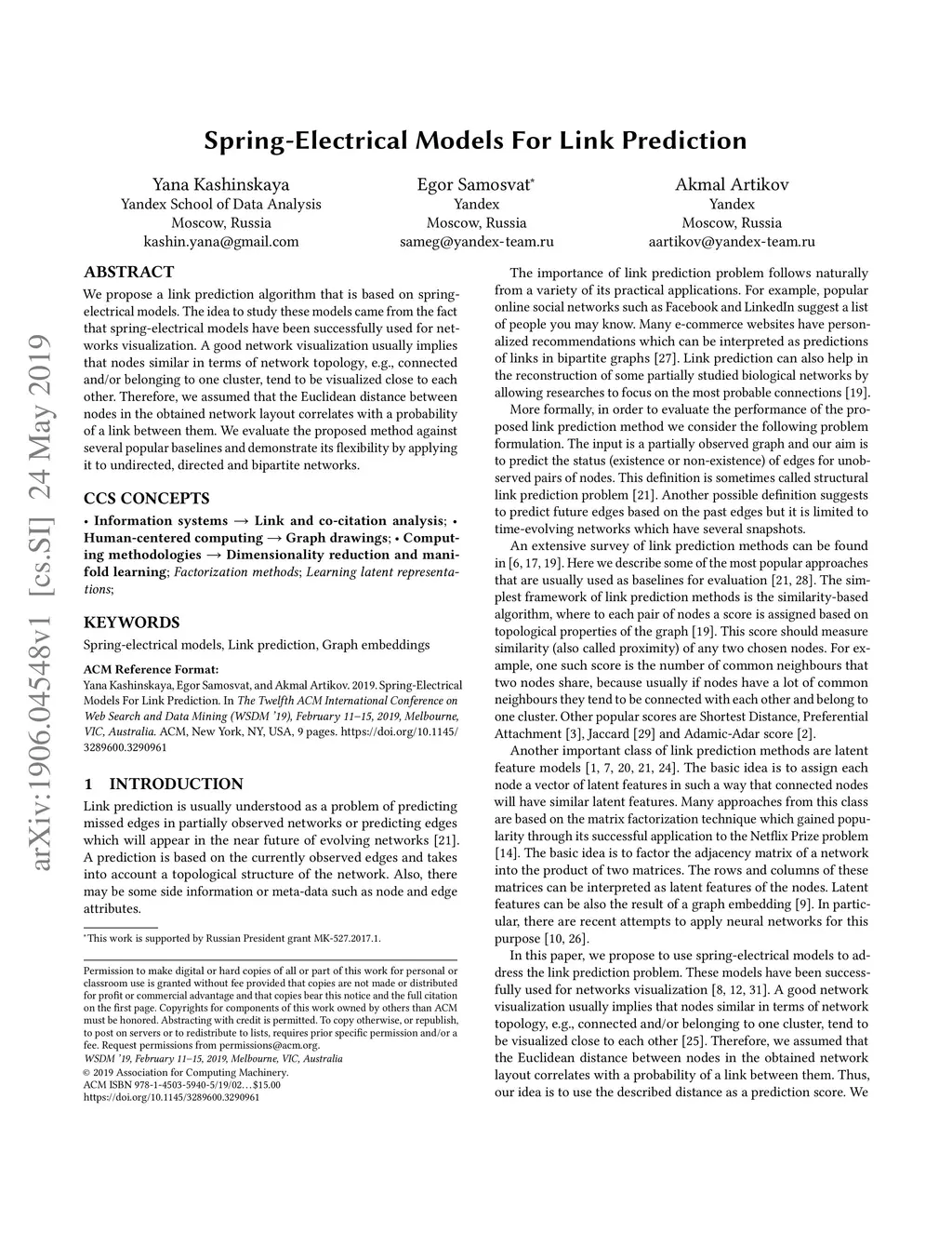 We propose a link prediction algorithm that is based on spring-electrical models. The idea to study these models came from the fact that spring-electrical models have been successfully used for networks visualization. A good network visualization usually implies that nodes similar in terms of network topology, e.g., connected and/or belonging to one cluster, tend to be visualized close to each other. Therefore, we assumed that the Euclidean distance between nodes in the obtained network layout correlates with a probability of a link between them. We evaluate the proposed method against several popular baselines and demonstrate its flexibility by applying it to undirected, directed and bipartite networks.