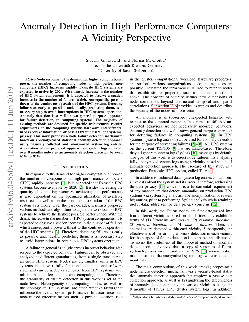 Anomaly Detection in High Performance Computers: A Vicinity Perspective
