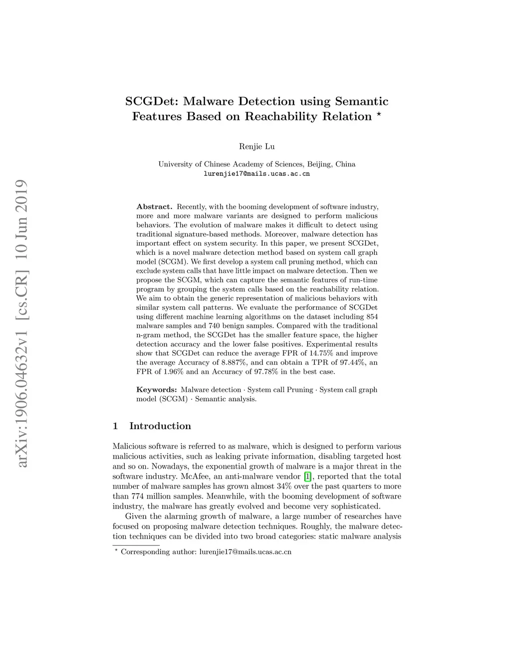 SCGDet: Malware Detection using Semantic Features Based on Reachability