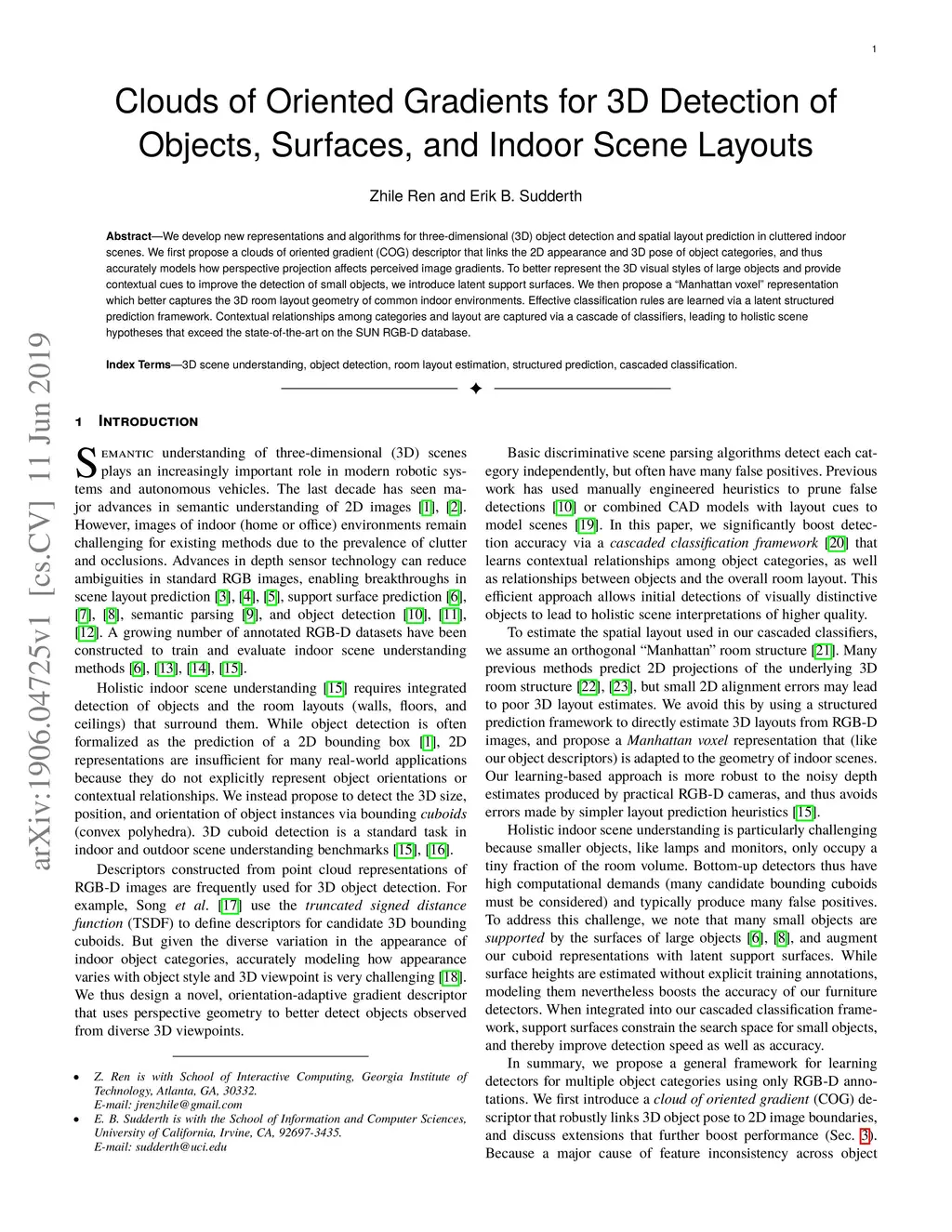 Clouds of Oriented Gradients for 3D Detection of Objects, Surfaces, and