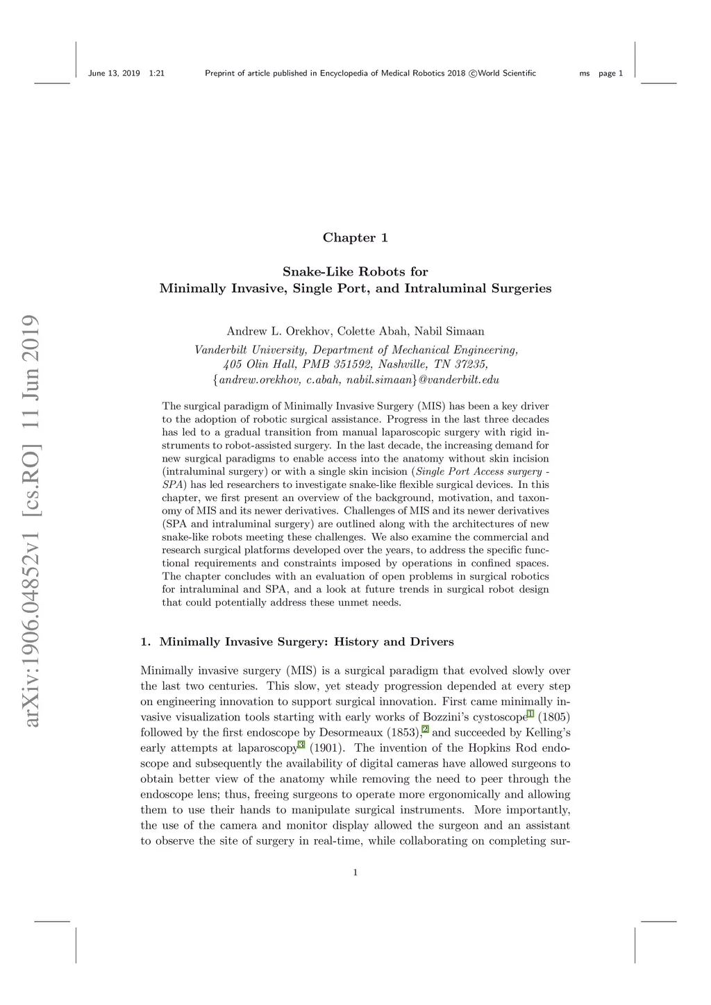 Snake-Like Robots for Minimally Invasive, Single Port, and Intraluminal
