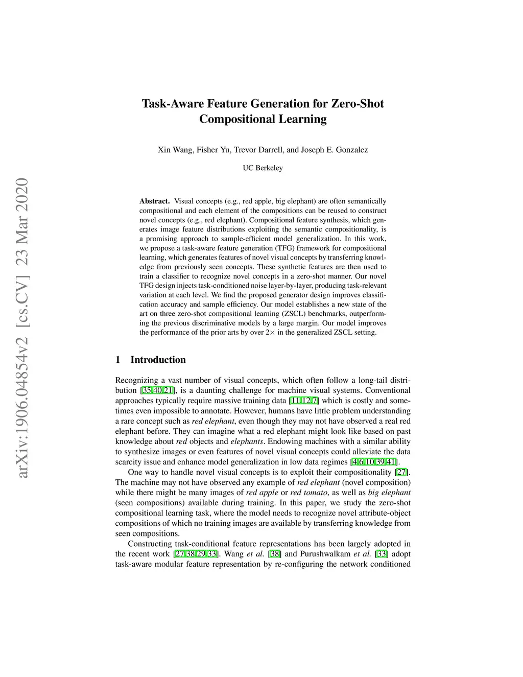 Task-Aware Feature Generation for Zero-Shot Compositional Learning