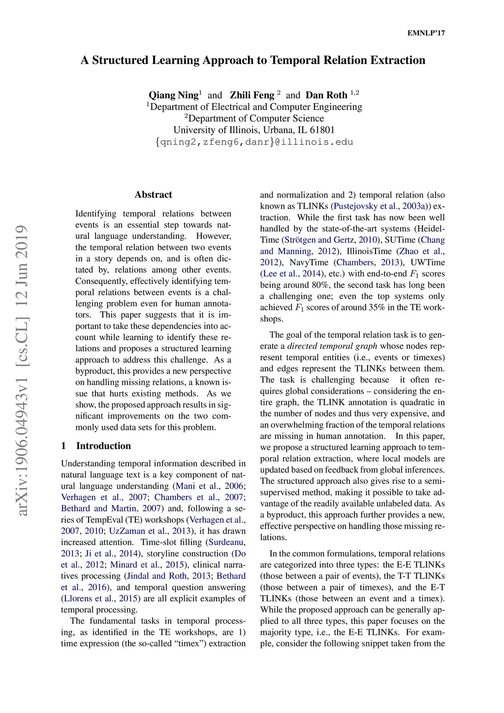 A Structured Learning Approach to Temporal Relation Extraction